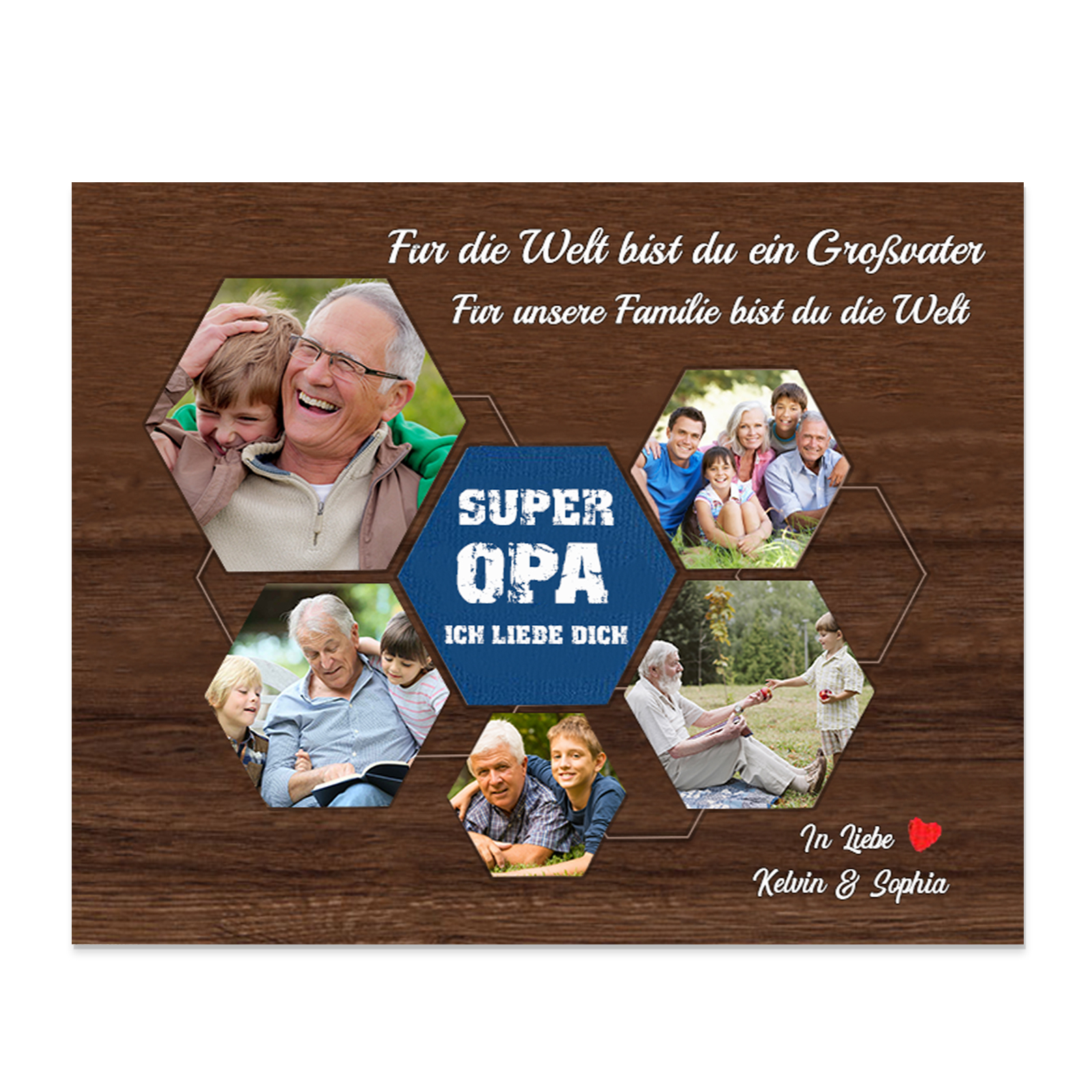 Opa Holzbild - Personalisierter Text & 5 Fotos-Super Opa Ich liebe dich-Holzdekoration
