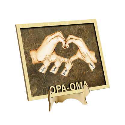 OPA-OMA Holz Deko-Personalisierbare 4 Namen Ornament Familie Hand in Hand Holzdekoration für Großeltern