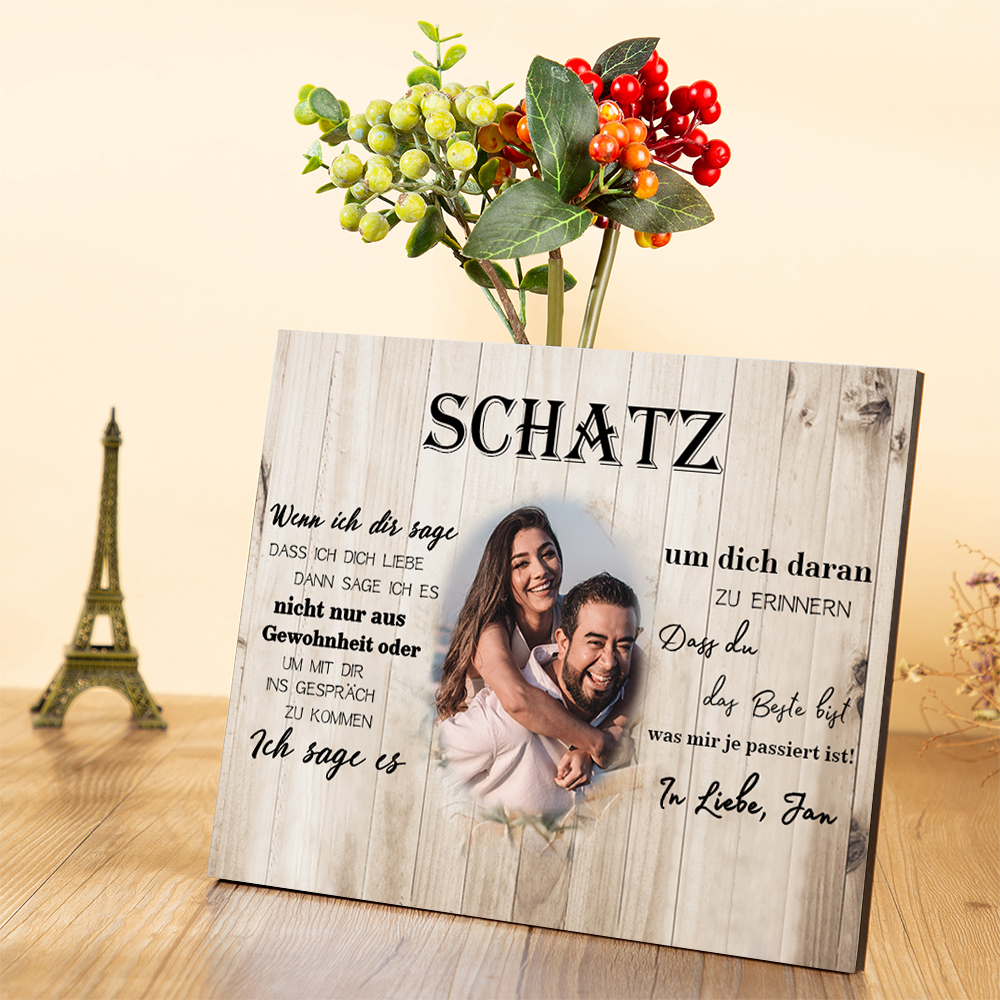 Paare Holzbild - Personalisierter Text & Foto-Schatz du bist das Beste, was mir je passiert ist-Holzdekoration