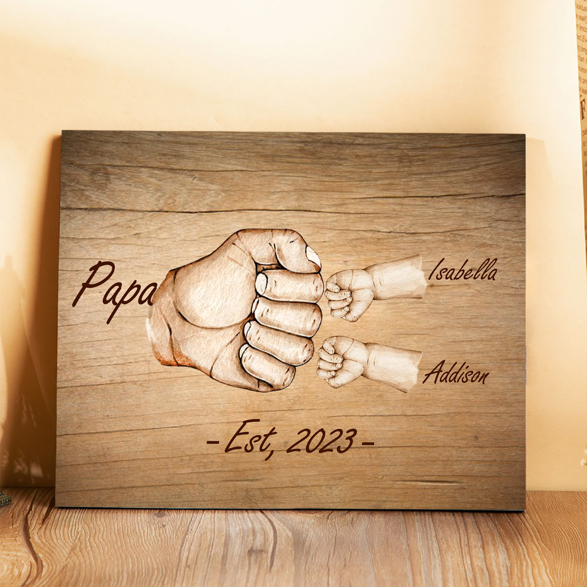 Papa Holzbild - Personalisierter Datum & 2 Namen Faust Holzdekoration