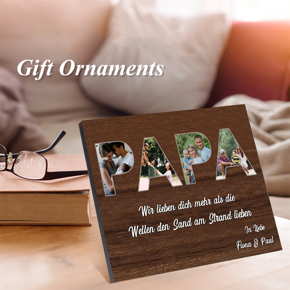 Papa Holzbild - Personalisierter Text & 4 Fotos Holzdekoration