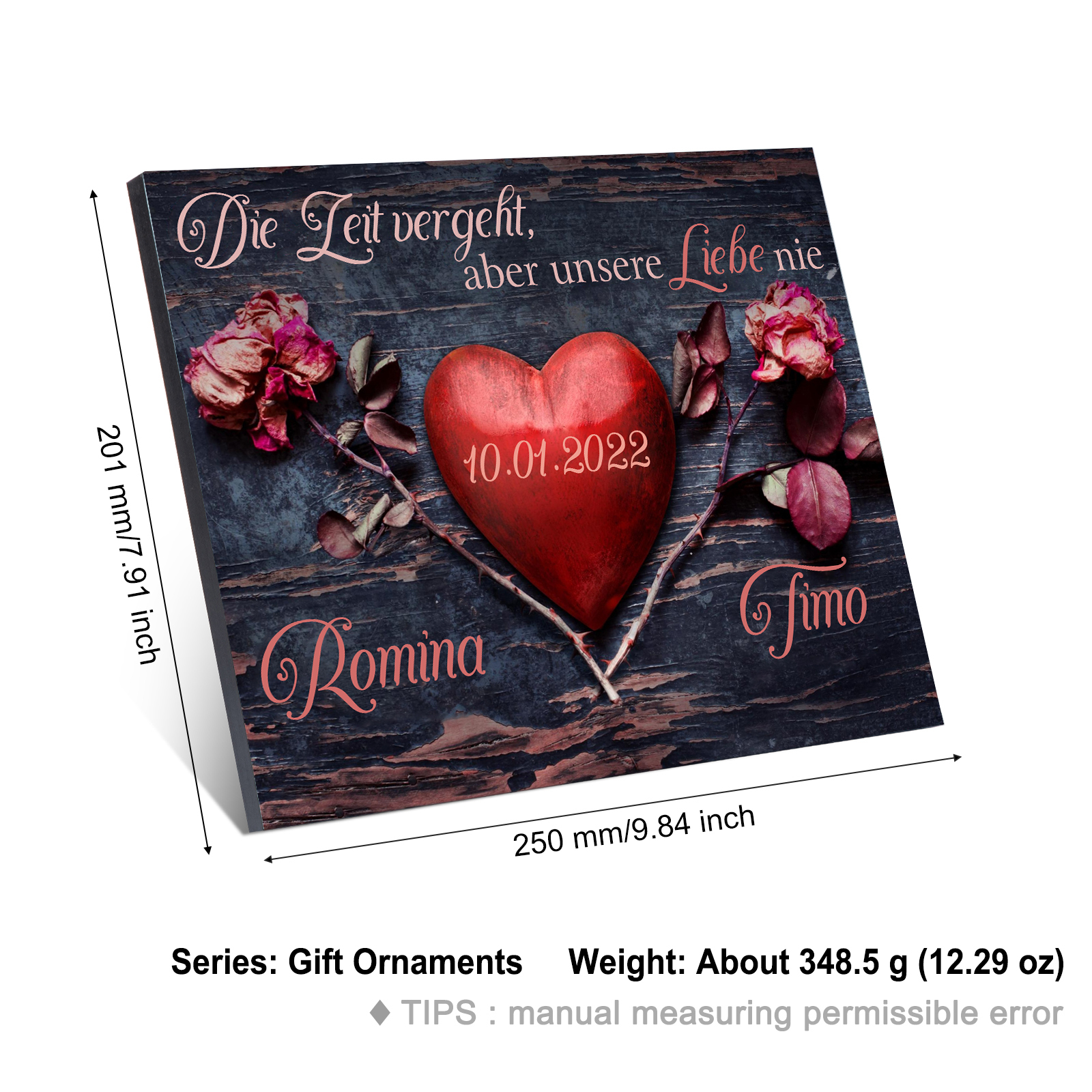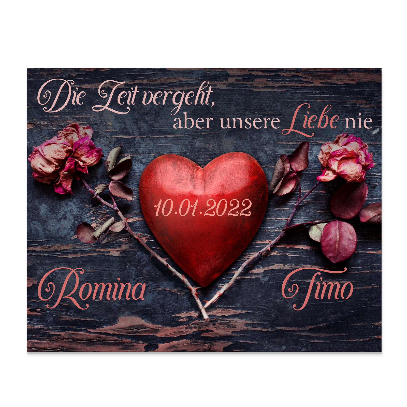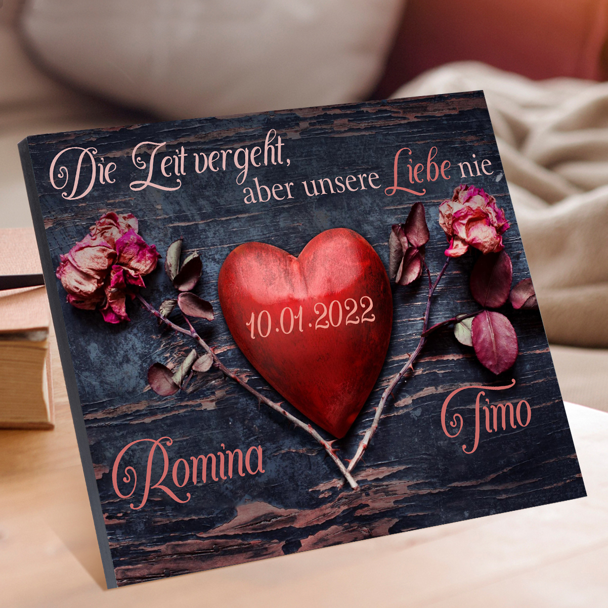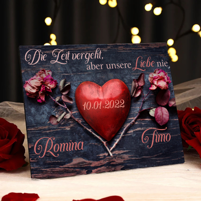Pärchen Holzbild-Personalisierter 2 Namen & Datum-Die Leit vergeht, aber unsere Liebe nie-Holzdekoration-für Paare