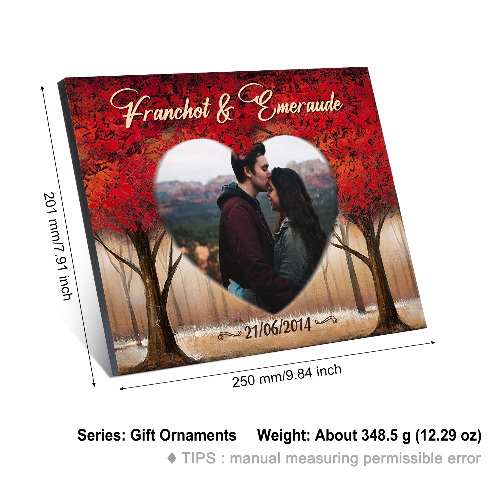 Pärchen Holzbild-Personalisierter 2 Namen & Datum & Foto Holzdekoration-für Paare