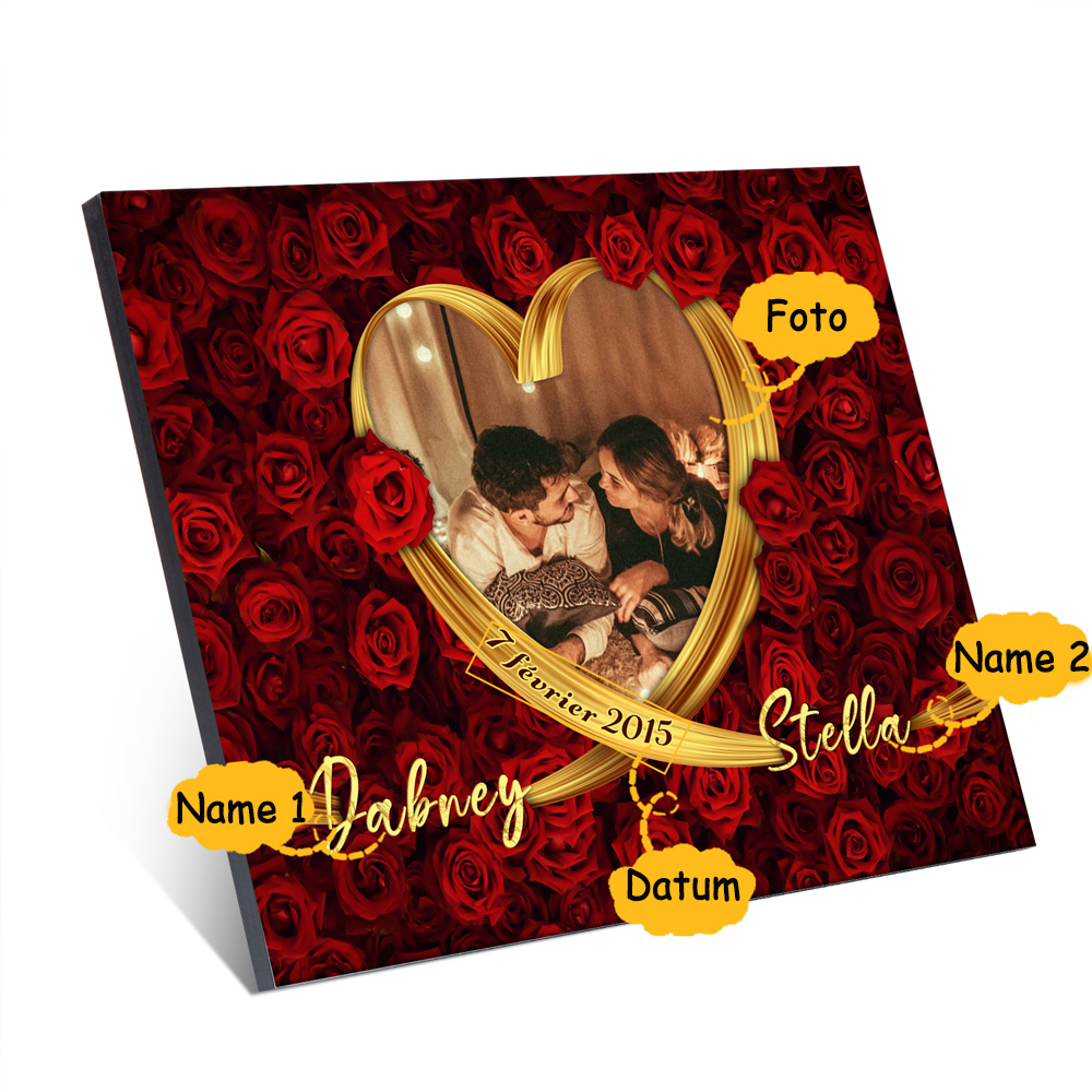 Pärchen Holzbild-Personalisierter 2 Namen & Datum & Foto Rose Holzdekoration-für Paare