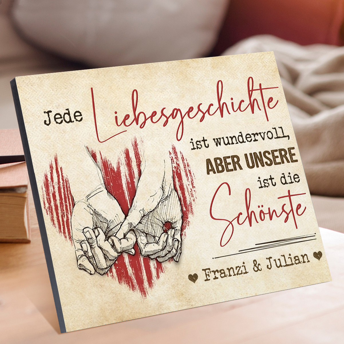 Pärchen Holzbild-Personalisierter Text-Jede Liebesgeschichte ist wundervoll aber aber unsere ist die Schönste-Holzdekoration-für Paare