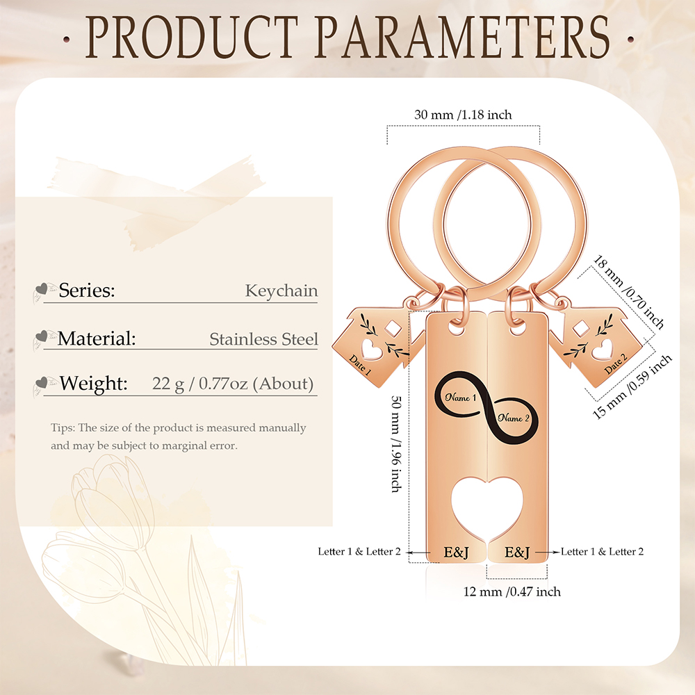 Personalisierbar 2 Namen & 2 Datum & 2 Buchstaben Infinity Metall Schlüsselanhänger mit Haus Anhänger