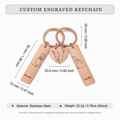Personalisierbar 2 Namen & 2 Datum Liebespaar Strichzeichnungen Metall Schlüsselanhänger
