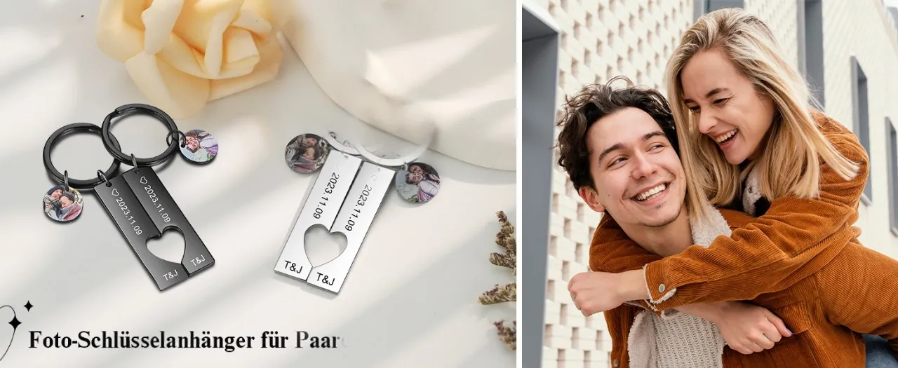 Personalisierbar 2 Namen & 2 Datum & Fotos Metall Schlüsselanhänger