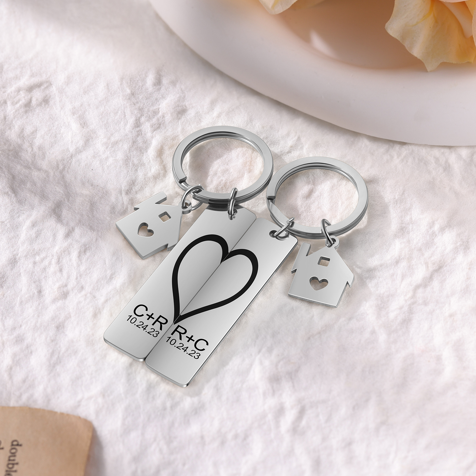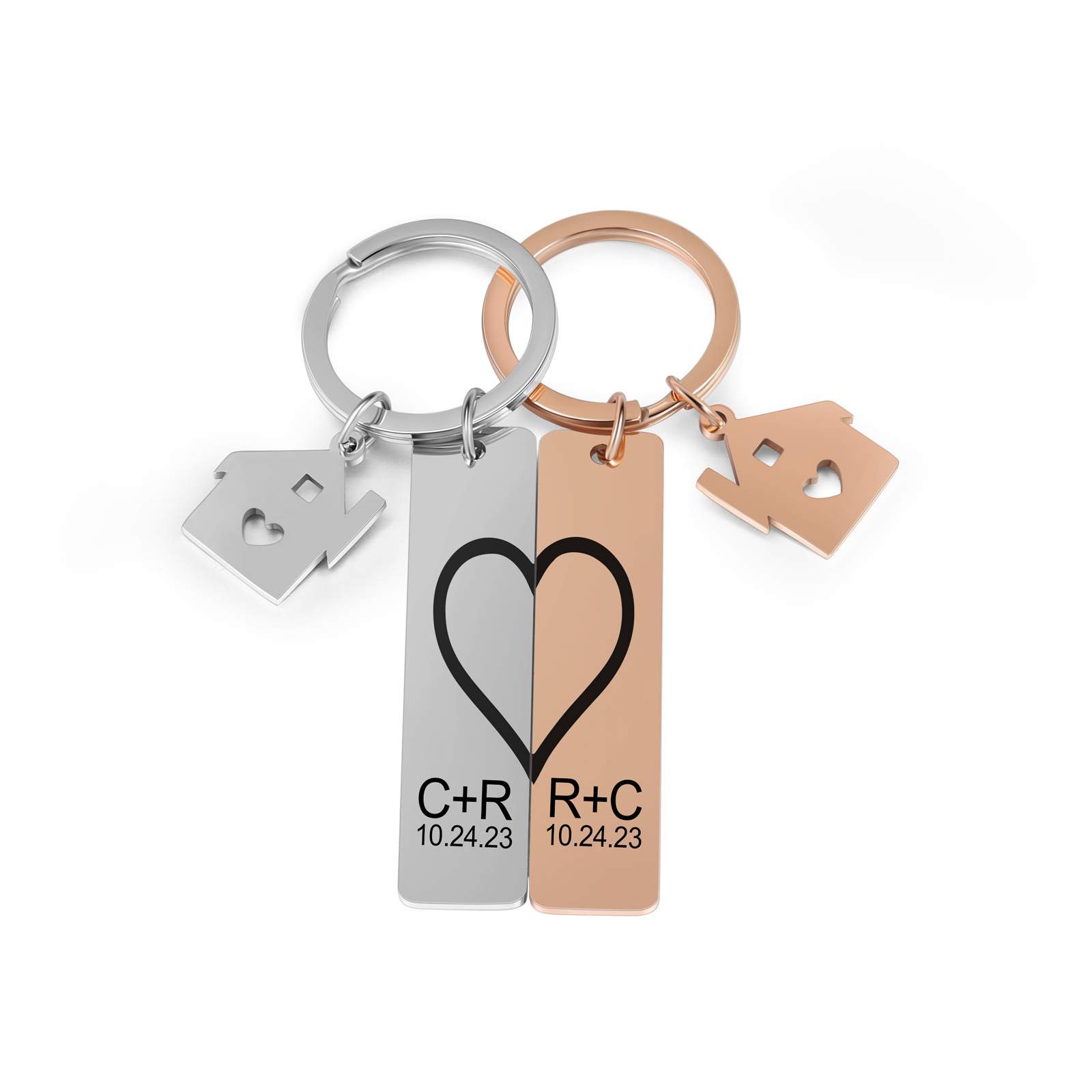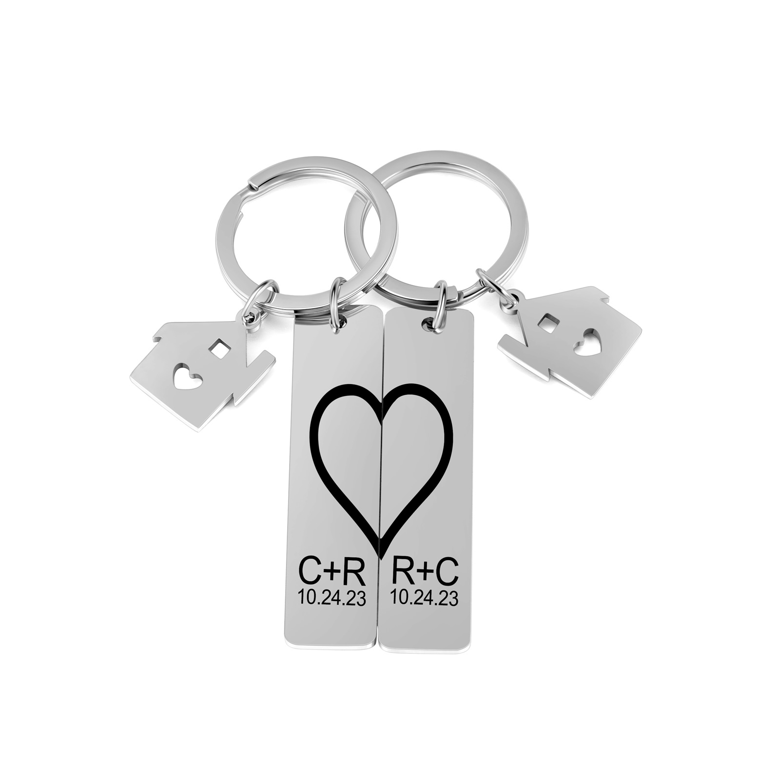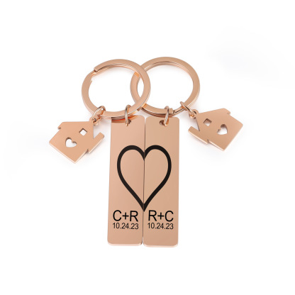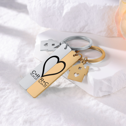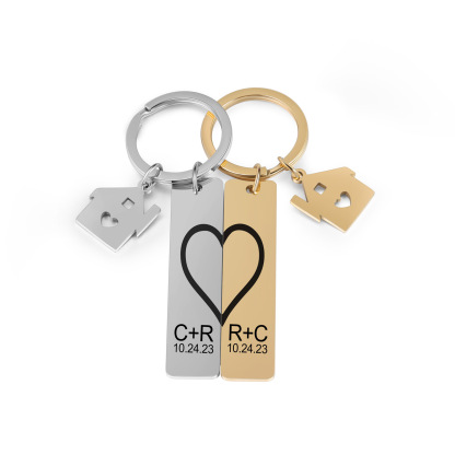 Personalisierbar 2 Buchstaben & 2 Datum- Herz und Herz Zuhause 🏠 Paar Metall-Schlüsselanhänger