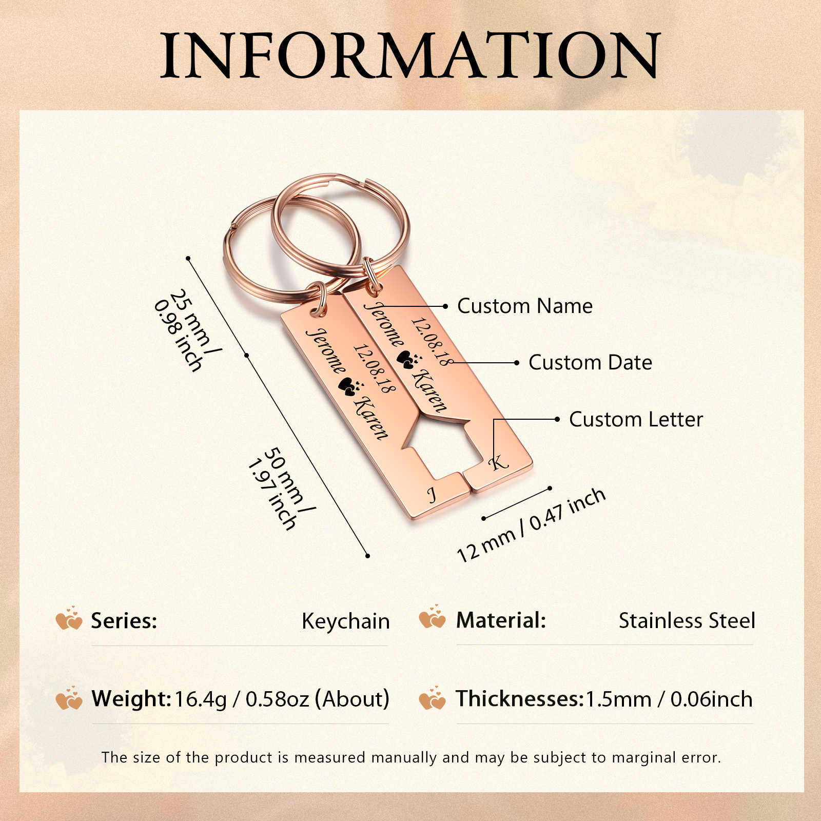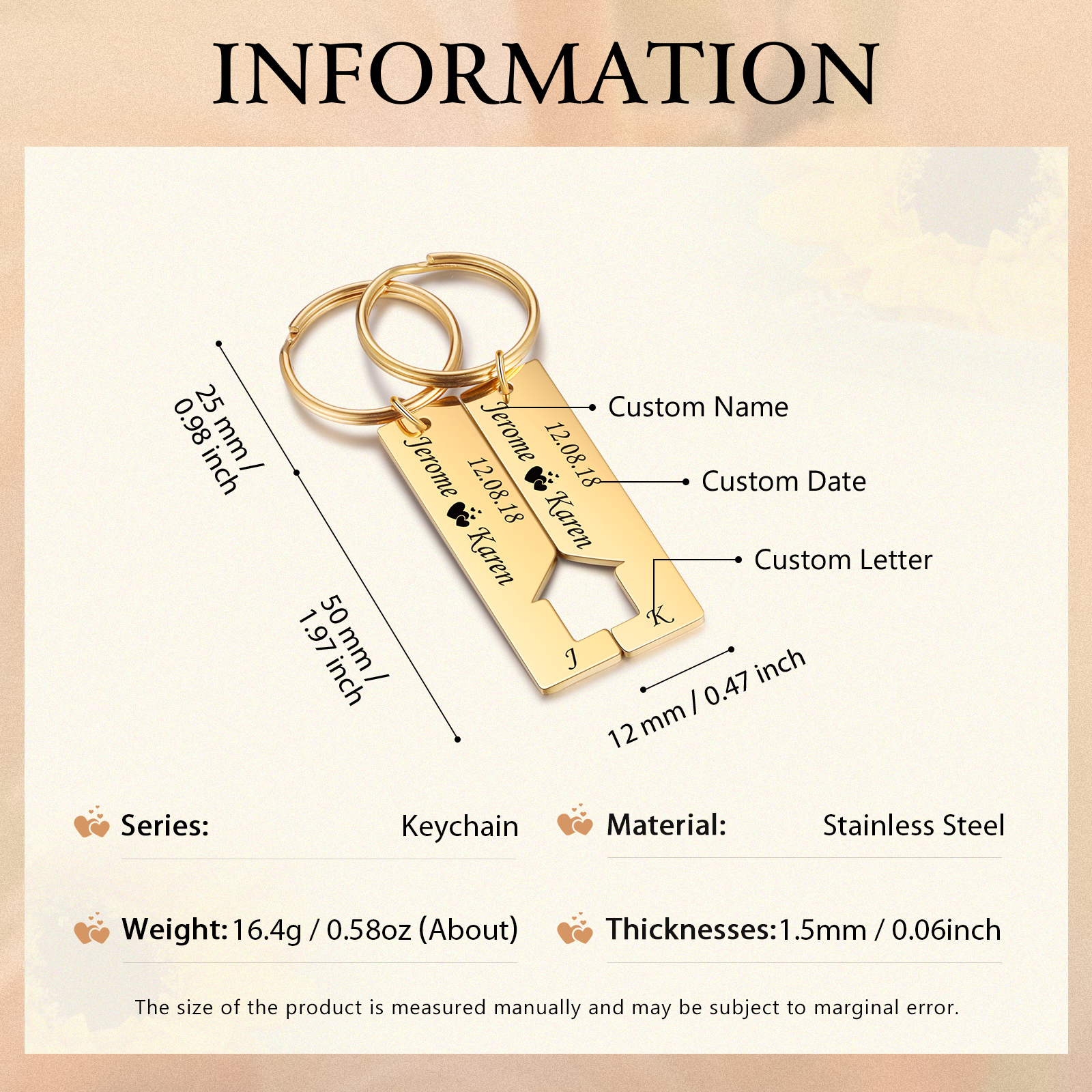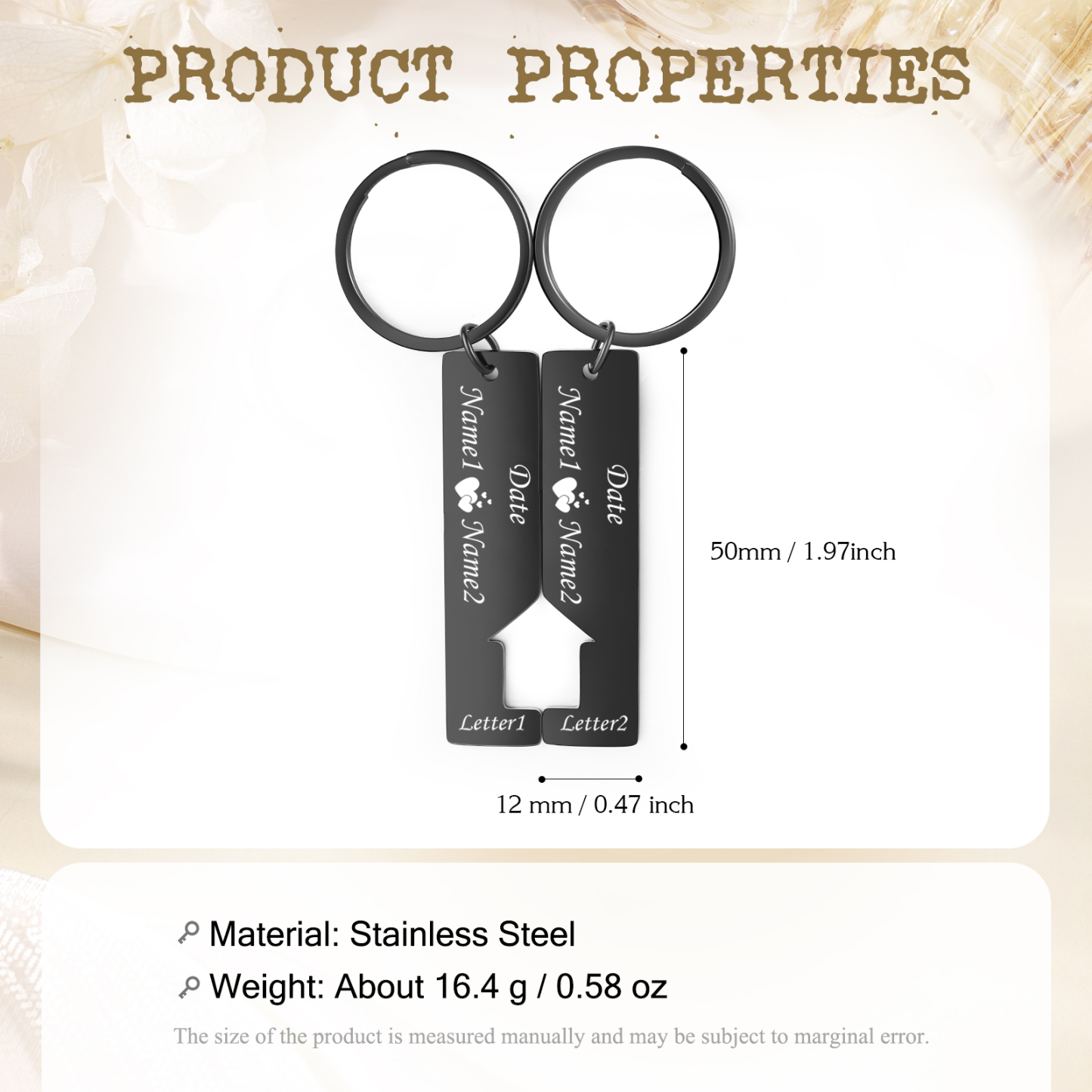 Personalisierbare 2 Namen & 2 Buchstaben & 2 Datum-Ausschnitt in Hausform Paar Metall-Schlüsselanhänger