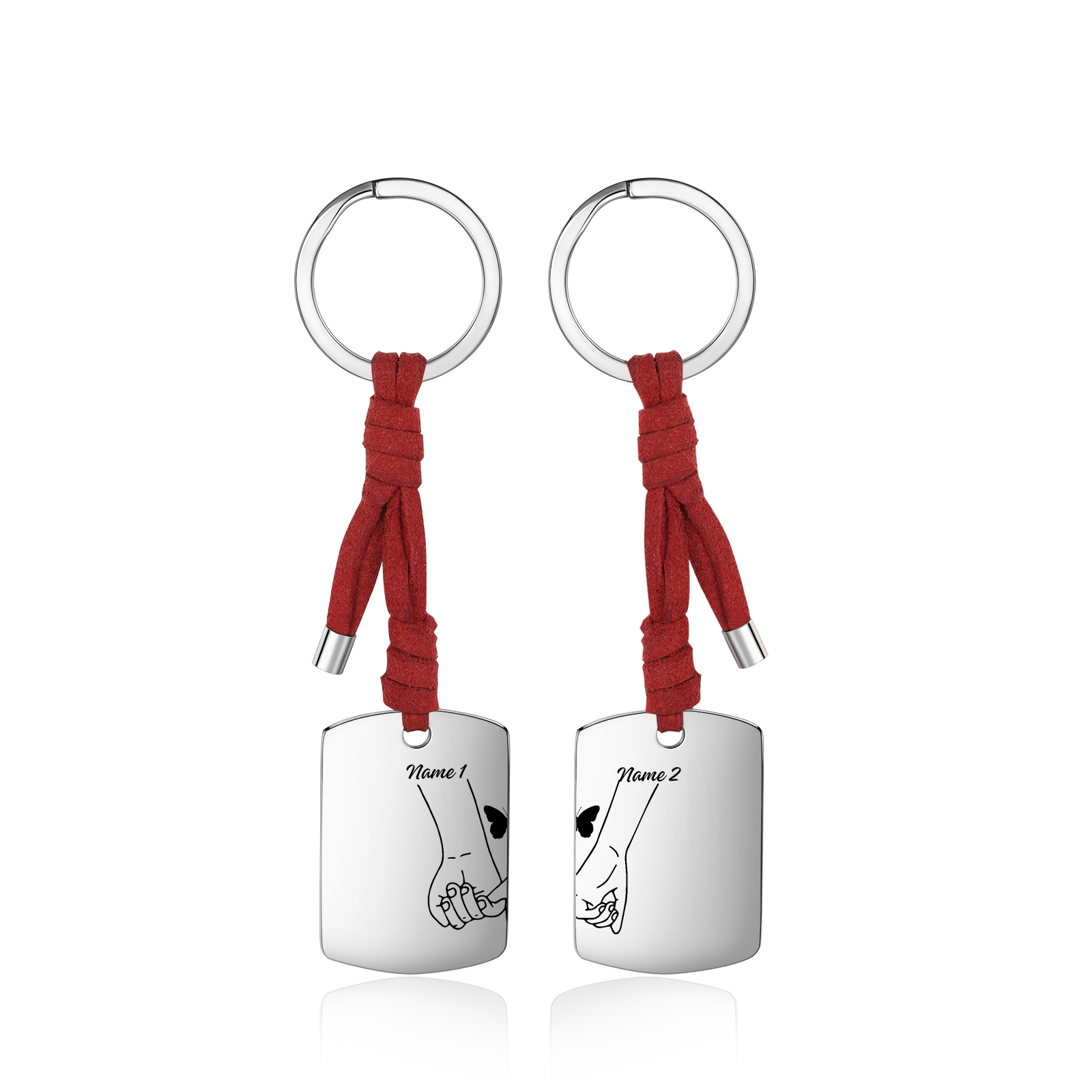Personalisierbare 2 Namen Pinky Versprechung Paar Metall-Schlüsselanhänger mit Leder Kette