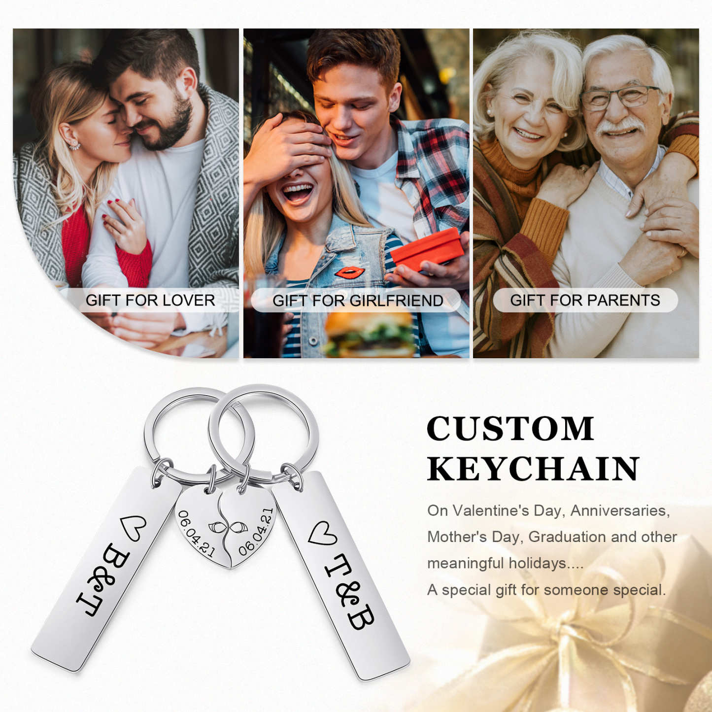 Personalisierbar 2 Buchstaben & Datum- Herz Paar Metall Schlüsselanhänger-An meinen Mann-Geschenk mit Nachrichtenkarte