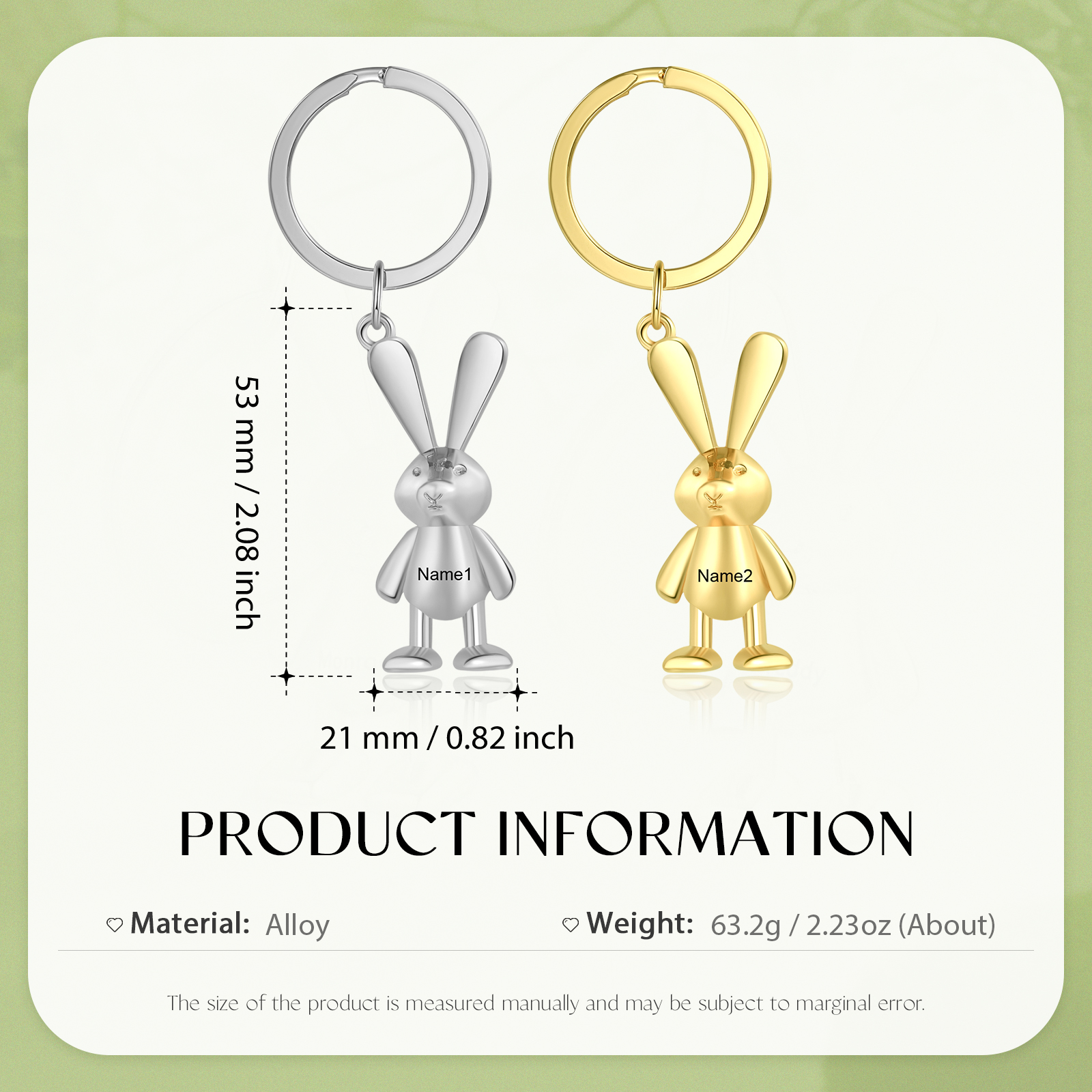 Personalisierbar 2 Namen-Häschen Metall Paar Schlüsselanhänger