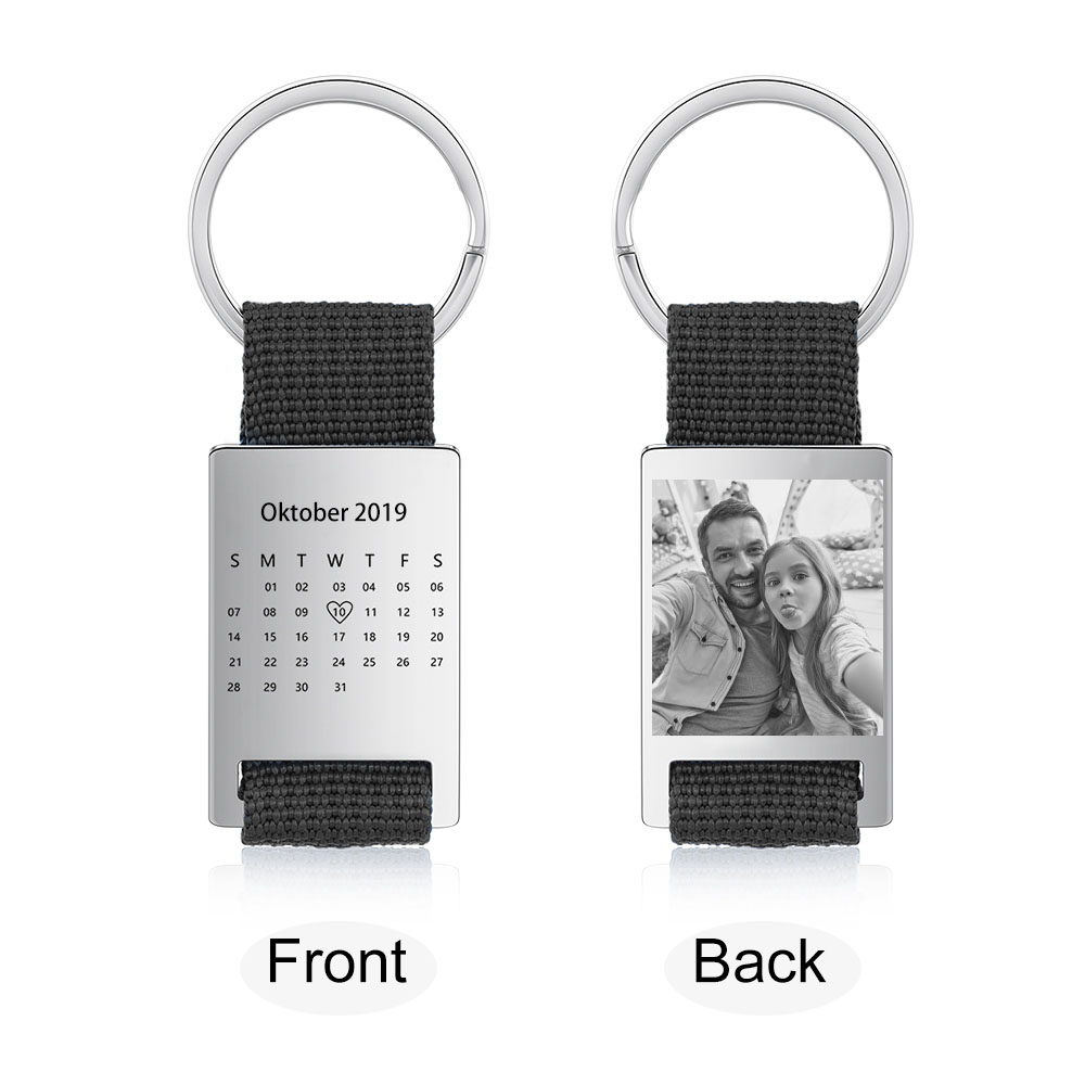 Personalisierbar Foto und Datum Metall-Schlüsselanhänger