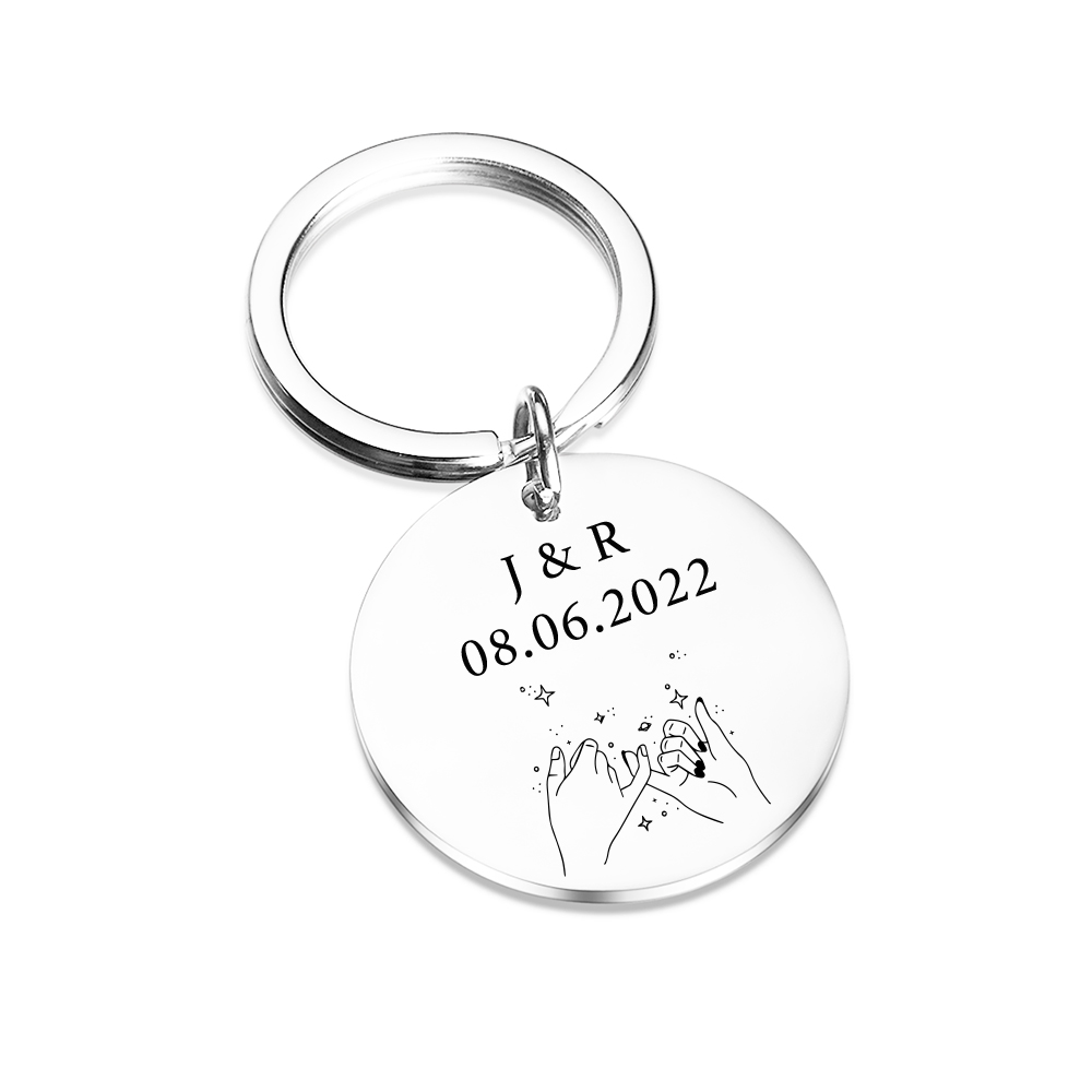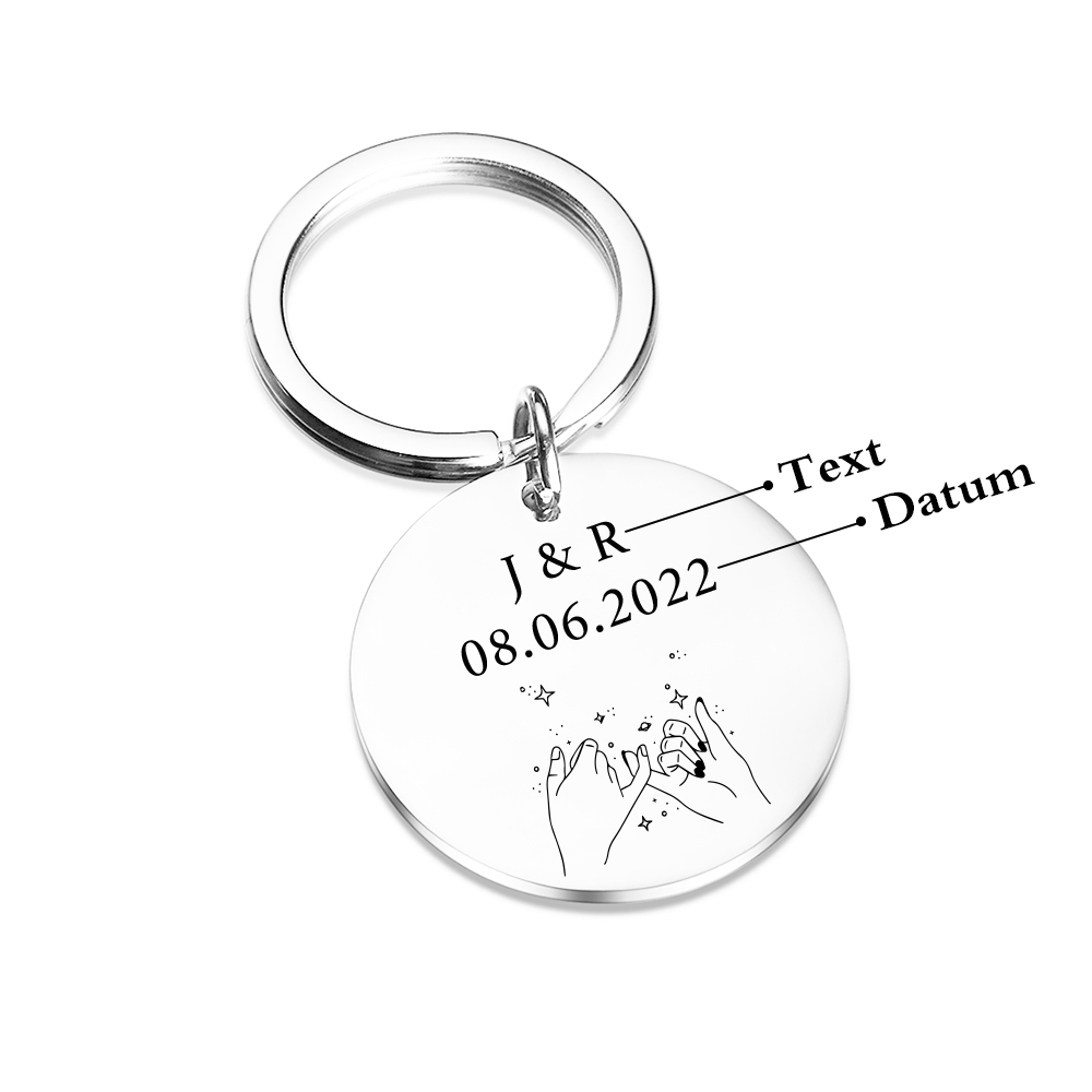 Personalisierbar Text & Datum Rund Metall Freundschaft Schlüsselanhänger für beste Freundin