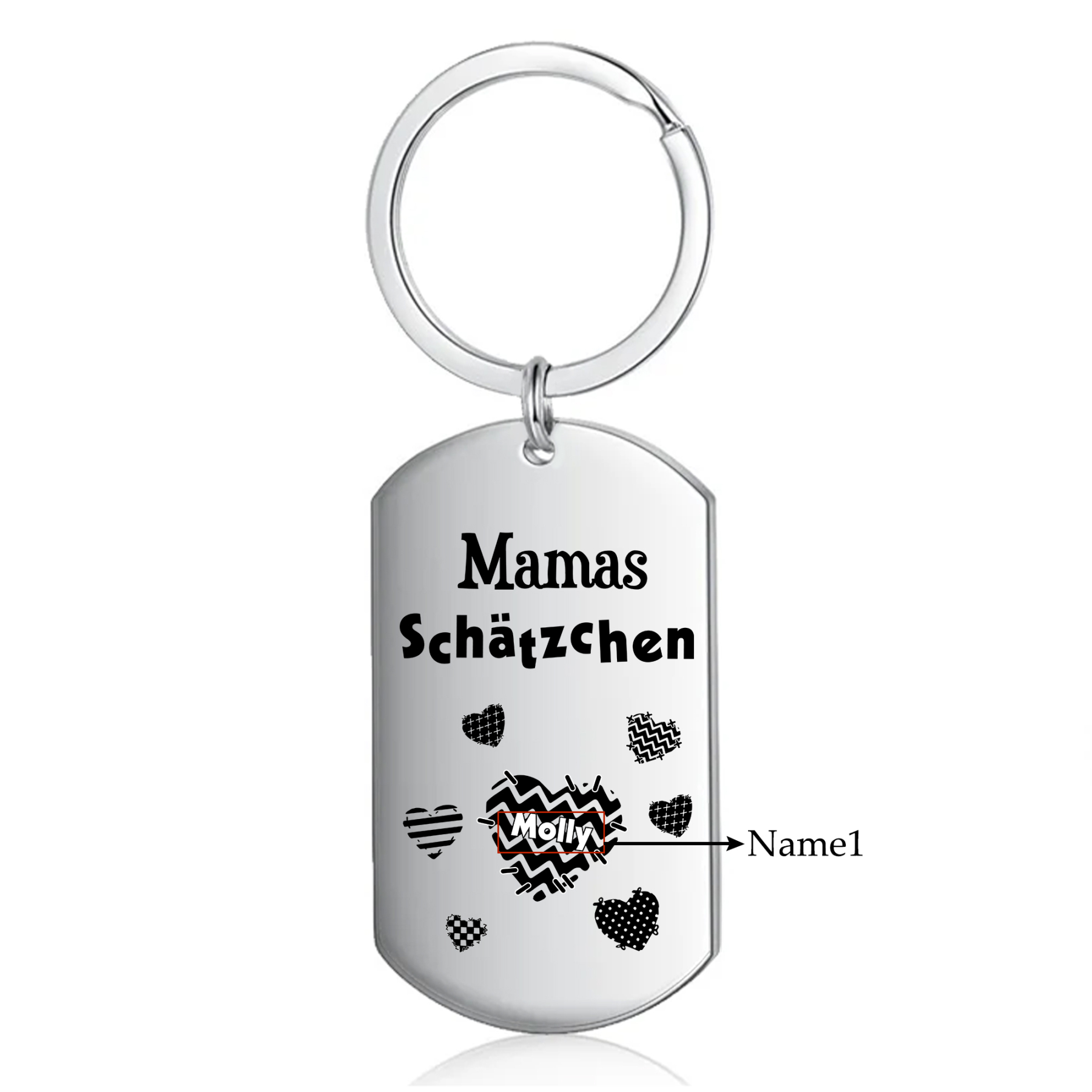 Personalisierbare 1-6 Namen Mamas Schätzchen Herz Schlüsselanhänger
