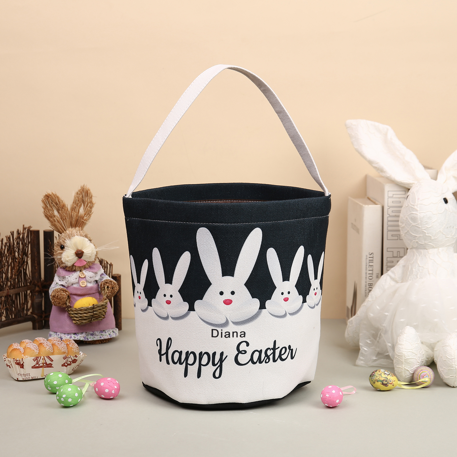 Personalisierbarer 1 Name Ostern Flachs Hase Tasche