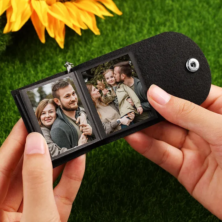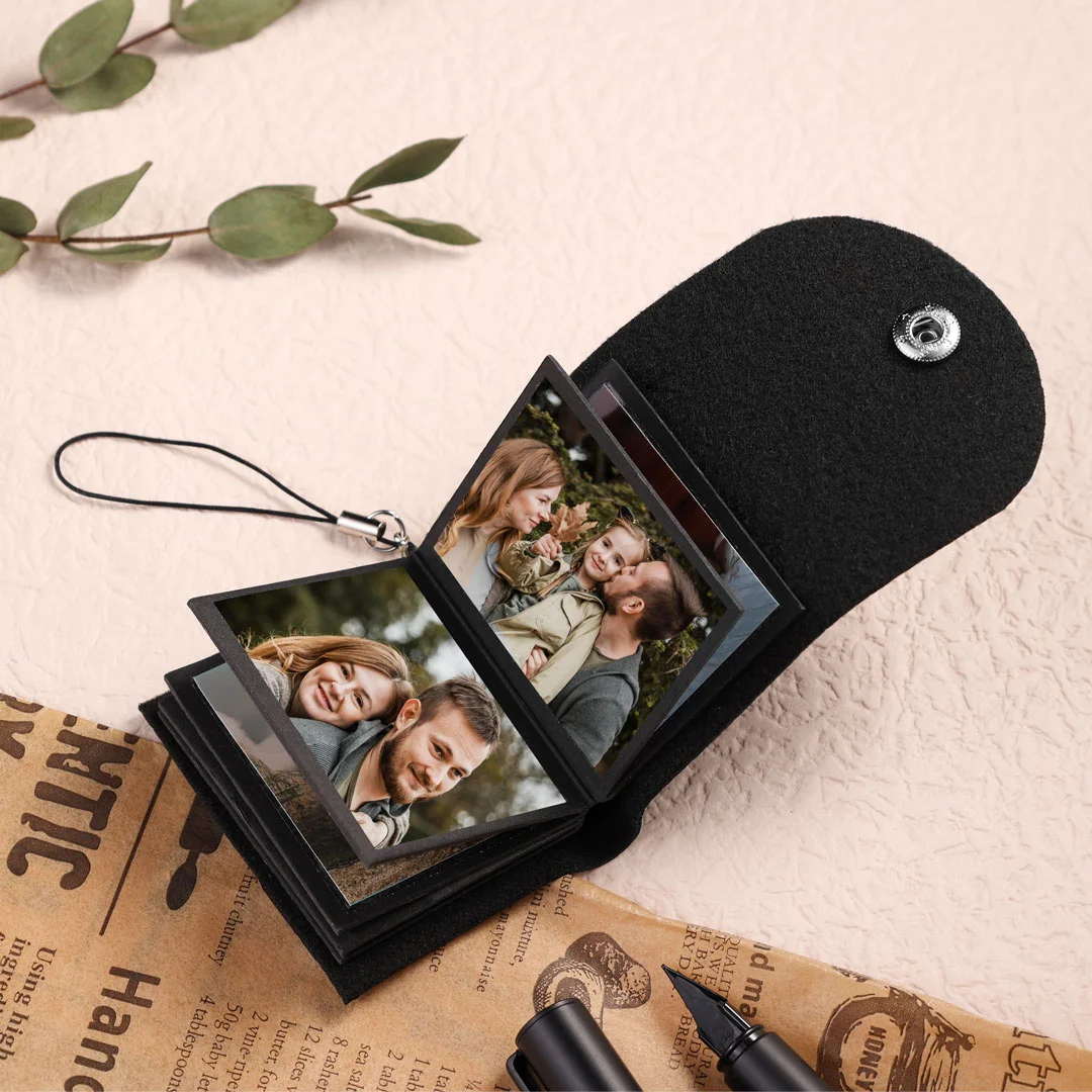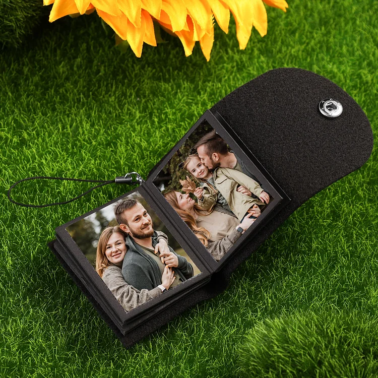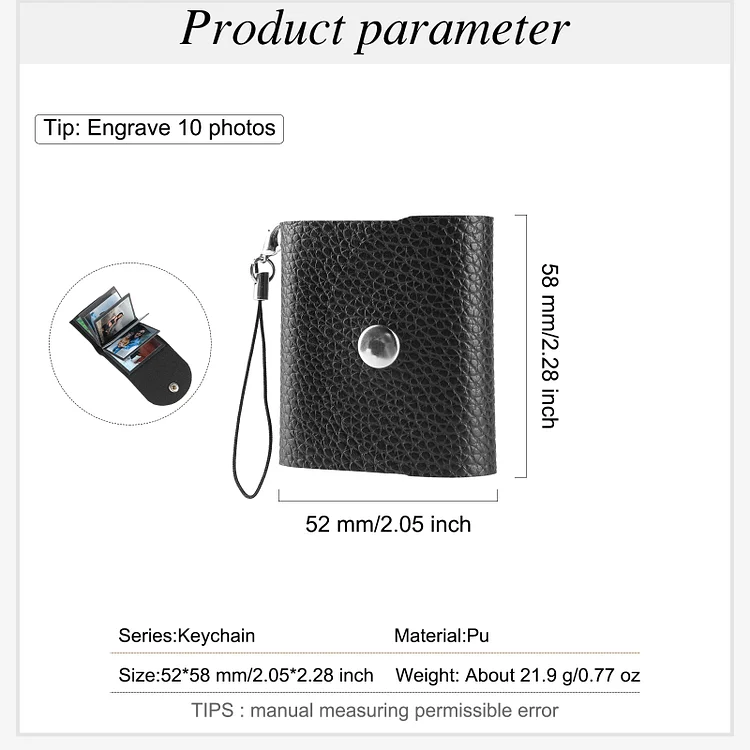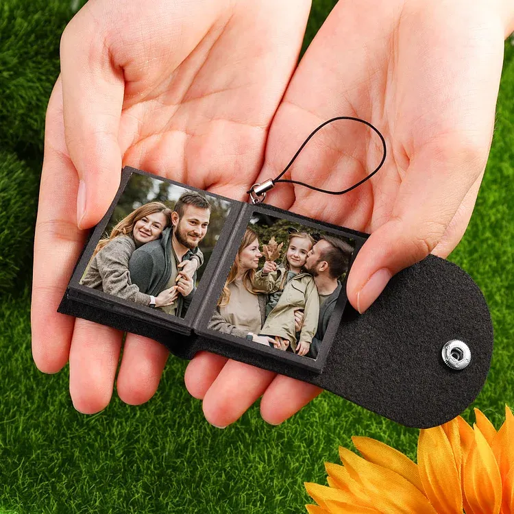 Personalisierbare 10 Fotos Schwarz Leder Schlüsselanhänger