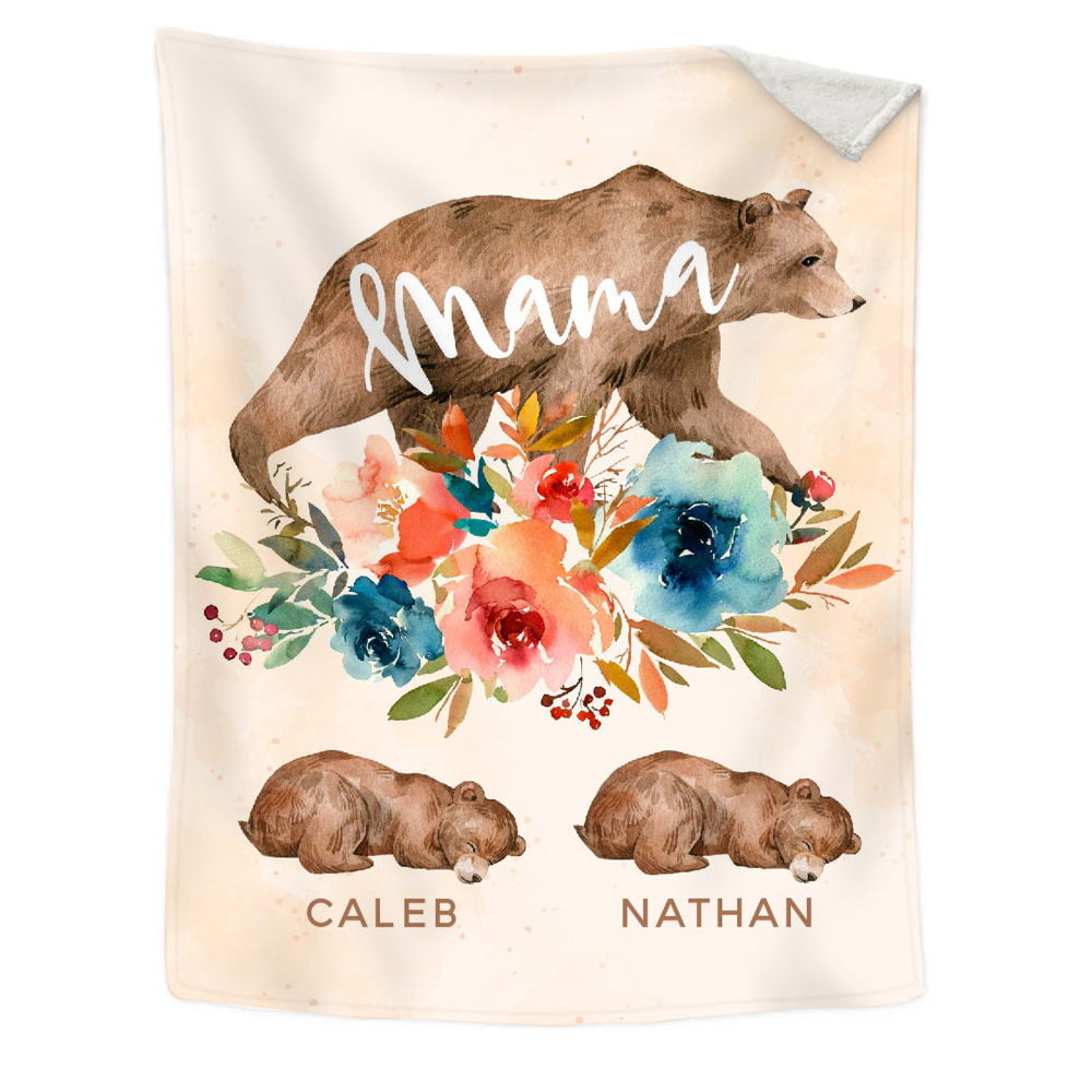 Personalisierbare 2 Namen Bunt Blume Mama Bär Decke - Geschenk für Mutter