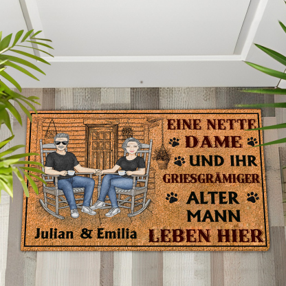 Personalisierbarer 2 Namen-Eine nette Dame und ihr griesgramiger alter Mann-Willkommen Fußmatte
