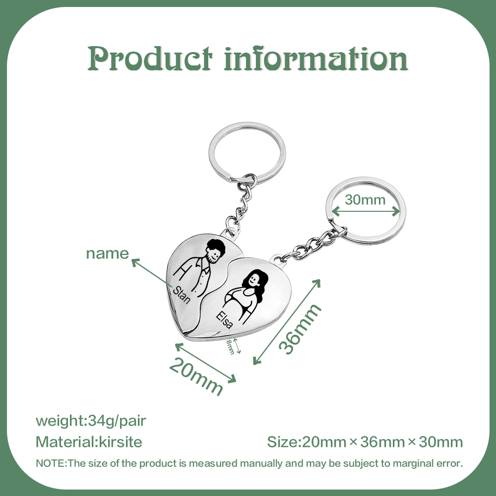 Personalisierbare 2 Namen Herz Ehepaar Paar Metall-Schlüsselanhänger