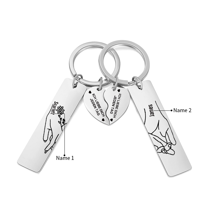Personalisierbare 2 Namen - Ich liebe dich jeden Tag - Metall Paar Schlüsselanhänger