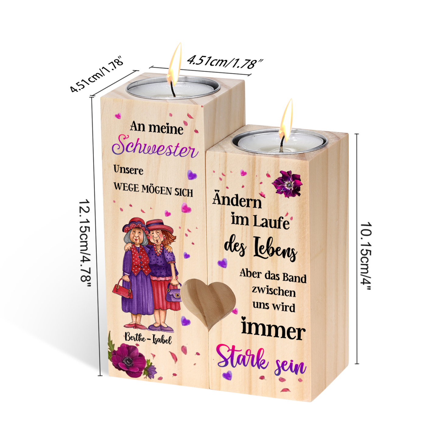 Personalisierbare 2 Namen Kerzenhalter-Das Band zwischen uns wird immer Stark sein-Für Schwester Kerzenständer