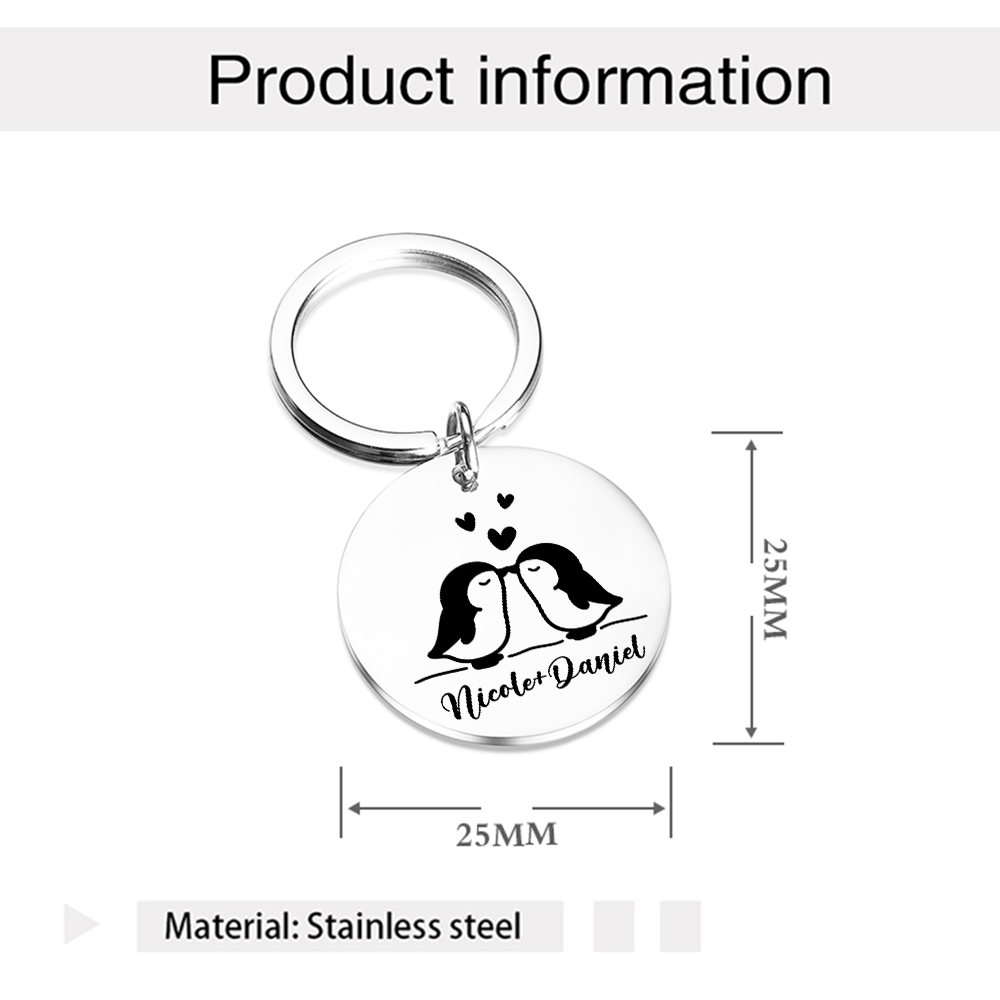 Personalisierbare 2 Namen Rund Metall Pinguin Schlüsselanhänger für Paar