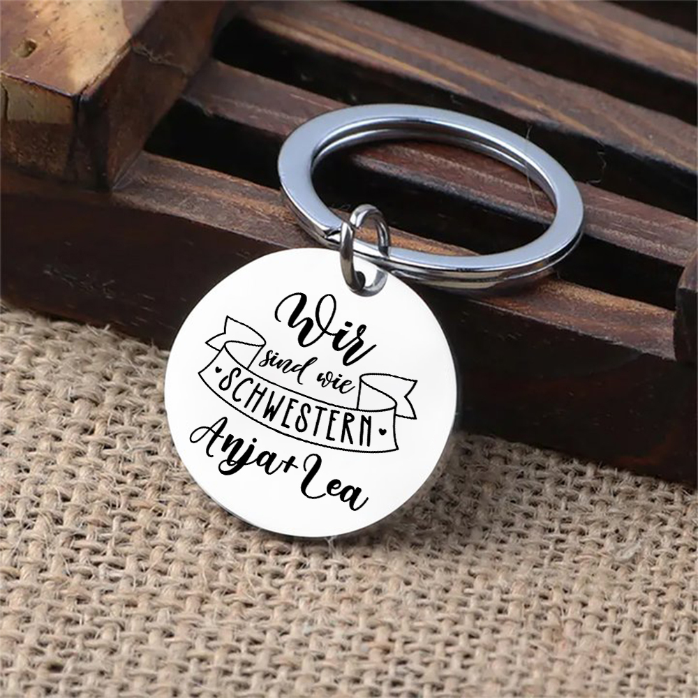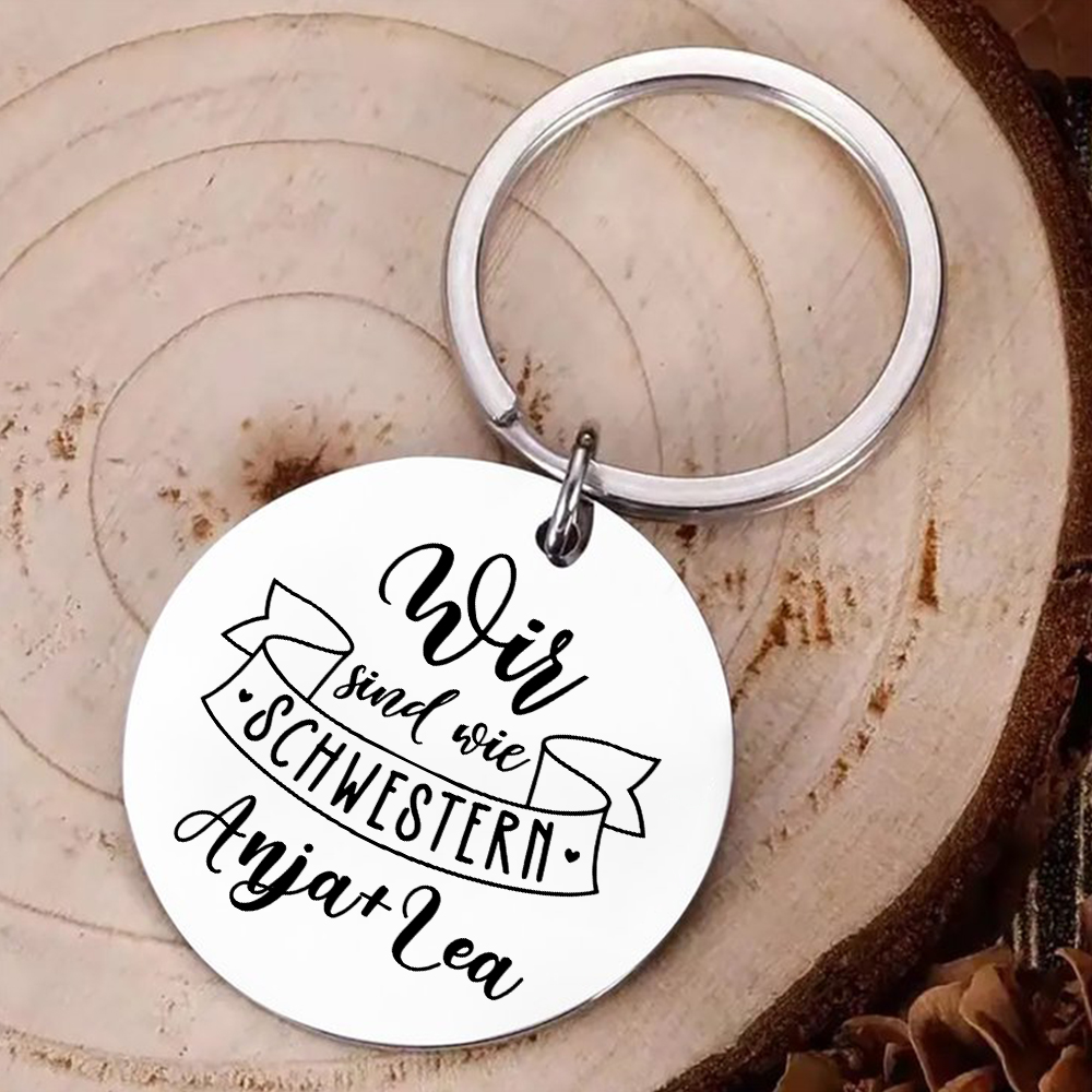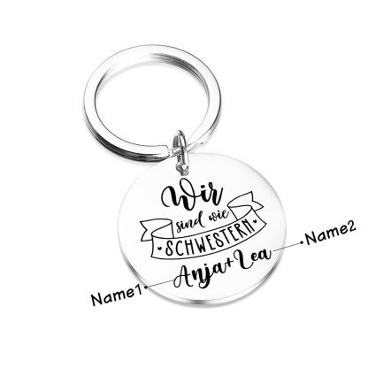 Personalisierbare 2 Namen Rund Metall-Wir sind wie Schwestern-Schlüsselanhänger für beste Freundin