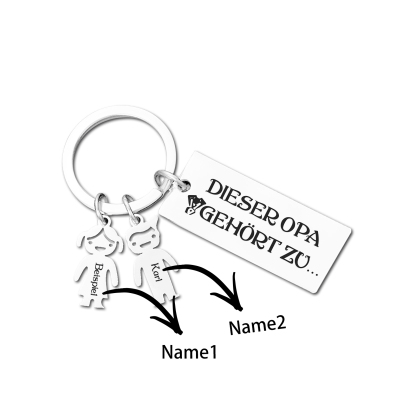 Personalisierbare 2 Namen Schlüsselanhänger-Dieser Opa gehört zu-Geschenk für Großvater