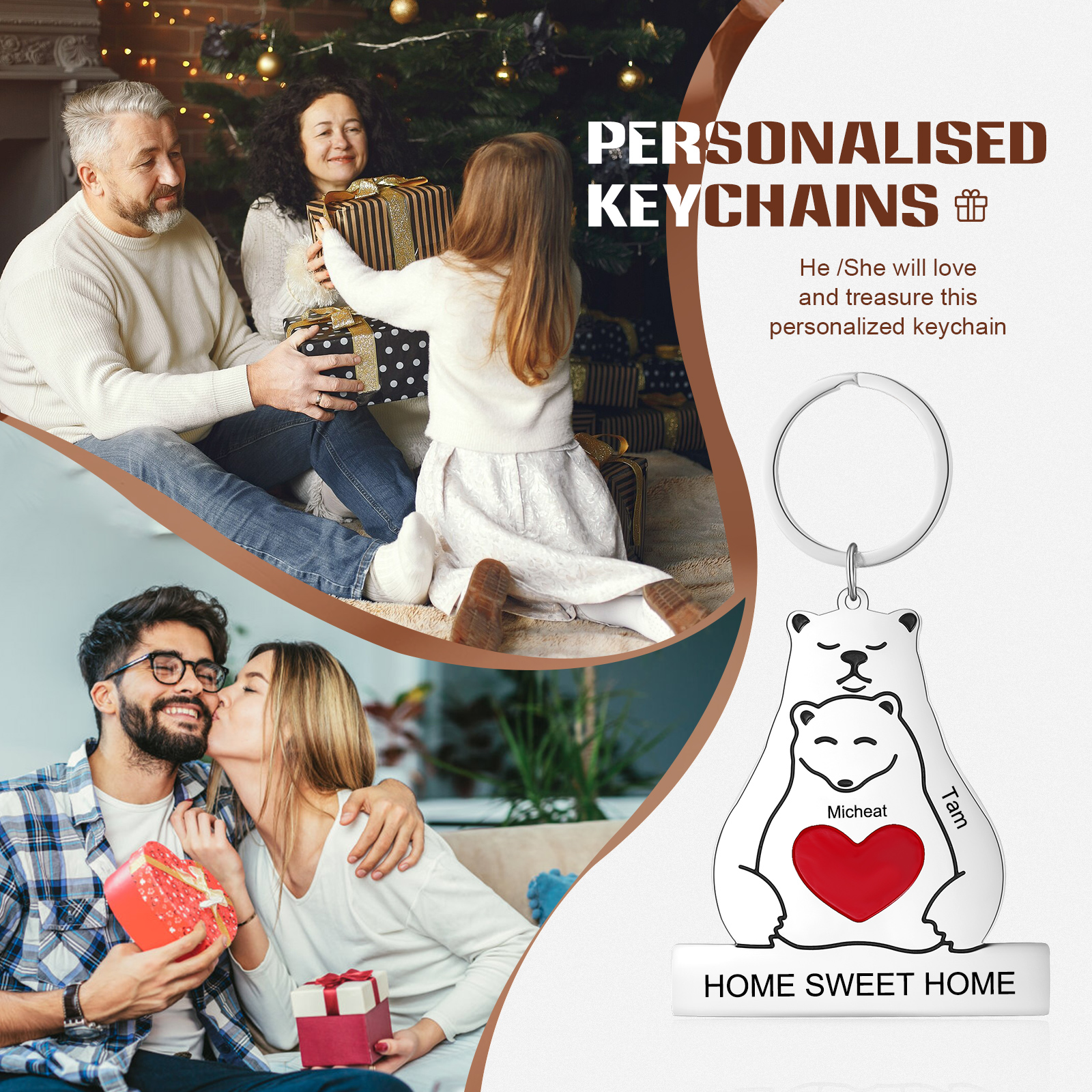 Personalisierbare 2 Namen & Text Metall Herr Bär und Frau Bär Paar Schlüsselanhänger