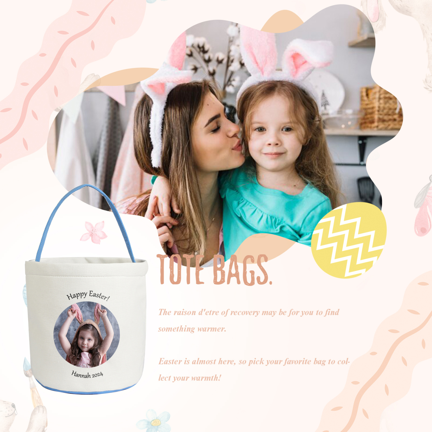 Personalisierbare 2 Texte & Foto Ostern Hase Korb