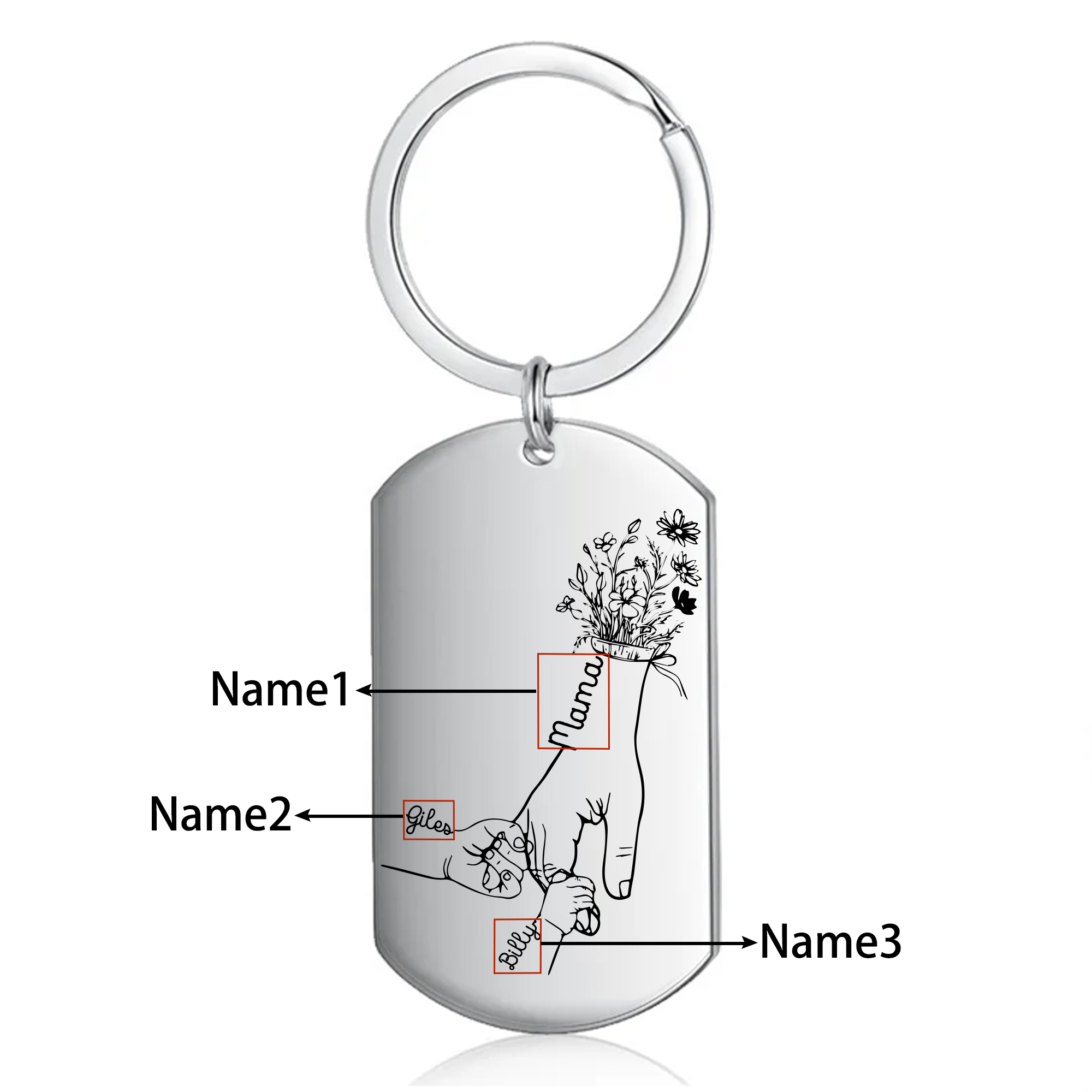 Personalisierbare 3 Namen Blume Hand Familie Schlüsselanhänger-Hinter jedem Glücklichen Kind steht eine Großartige Mutter-Geschenk mit Nachrichtenkarte