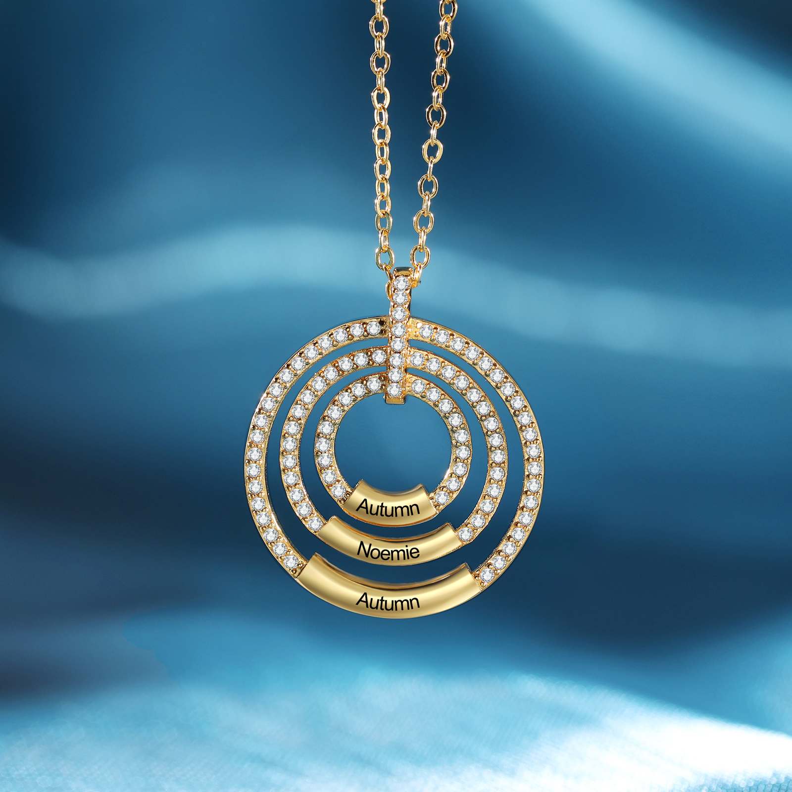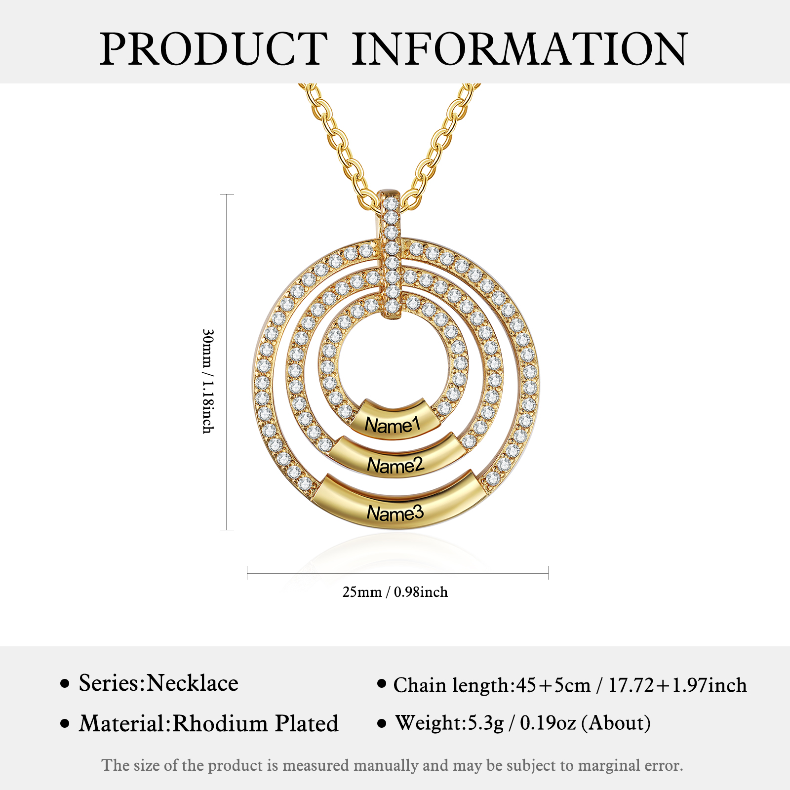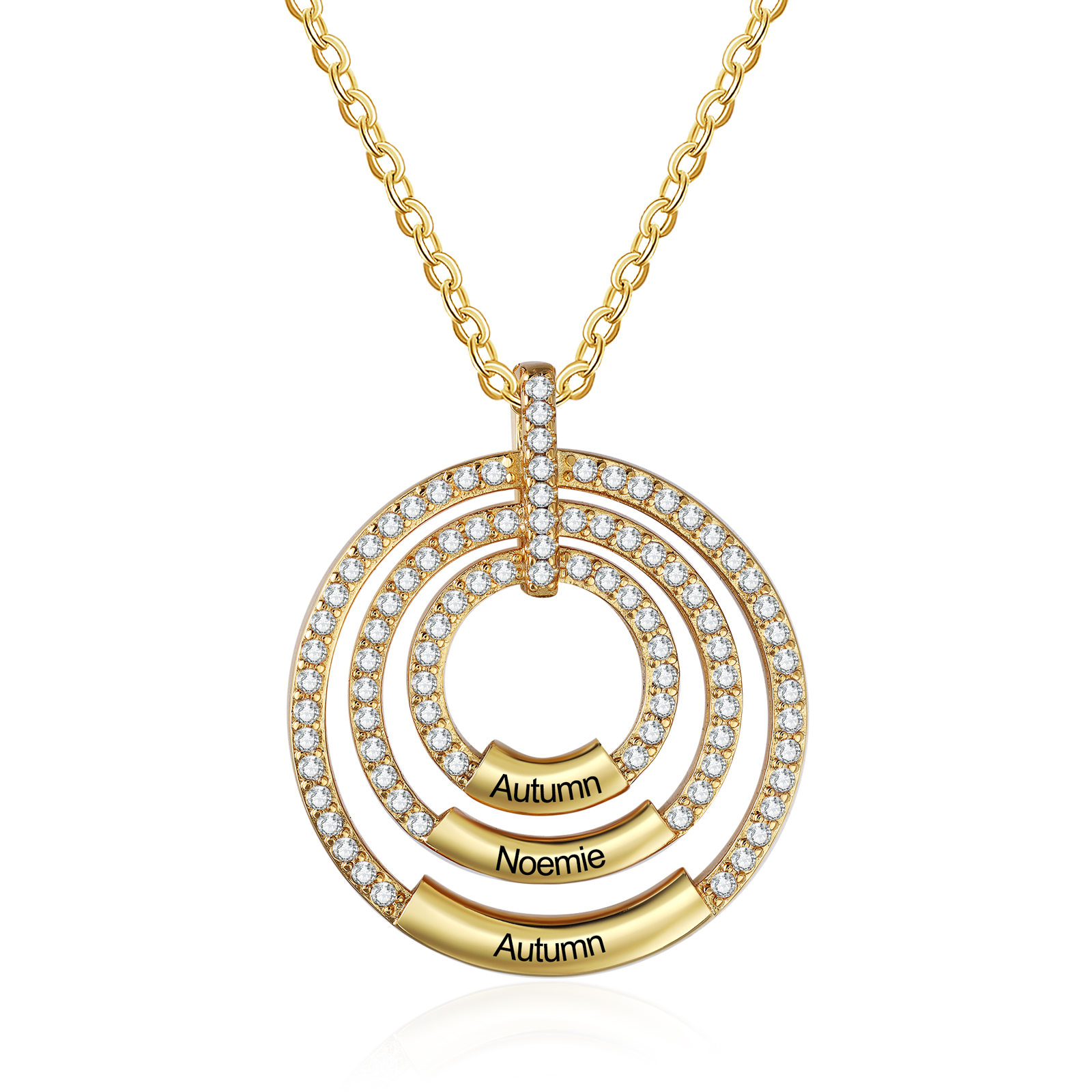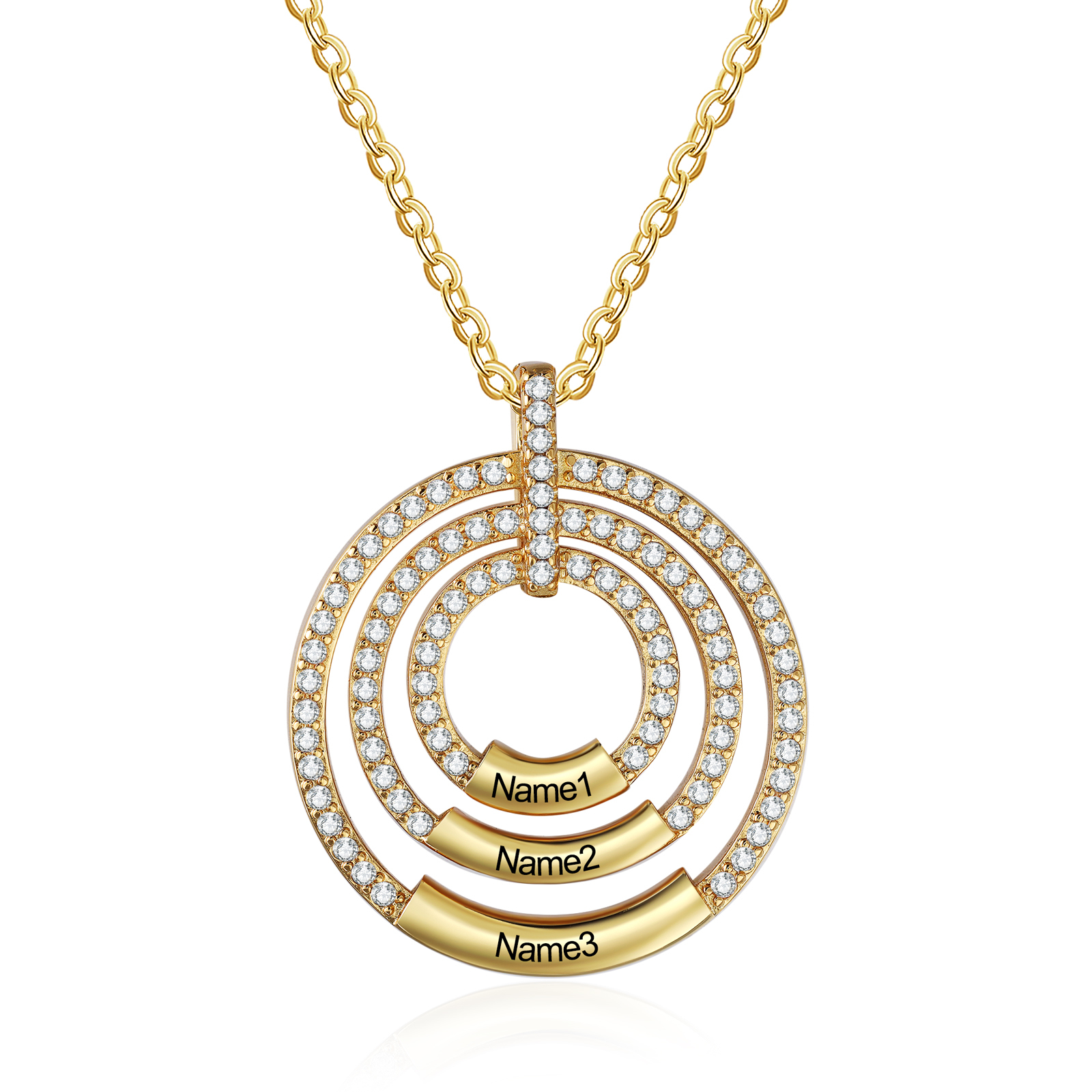 Personalisierbare 3 Namen Halskette mit Zirkonia im Kreis