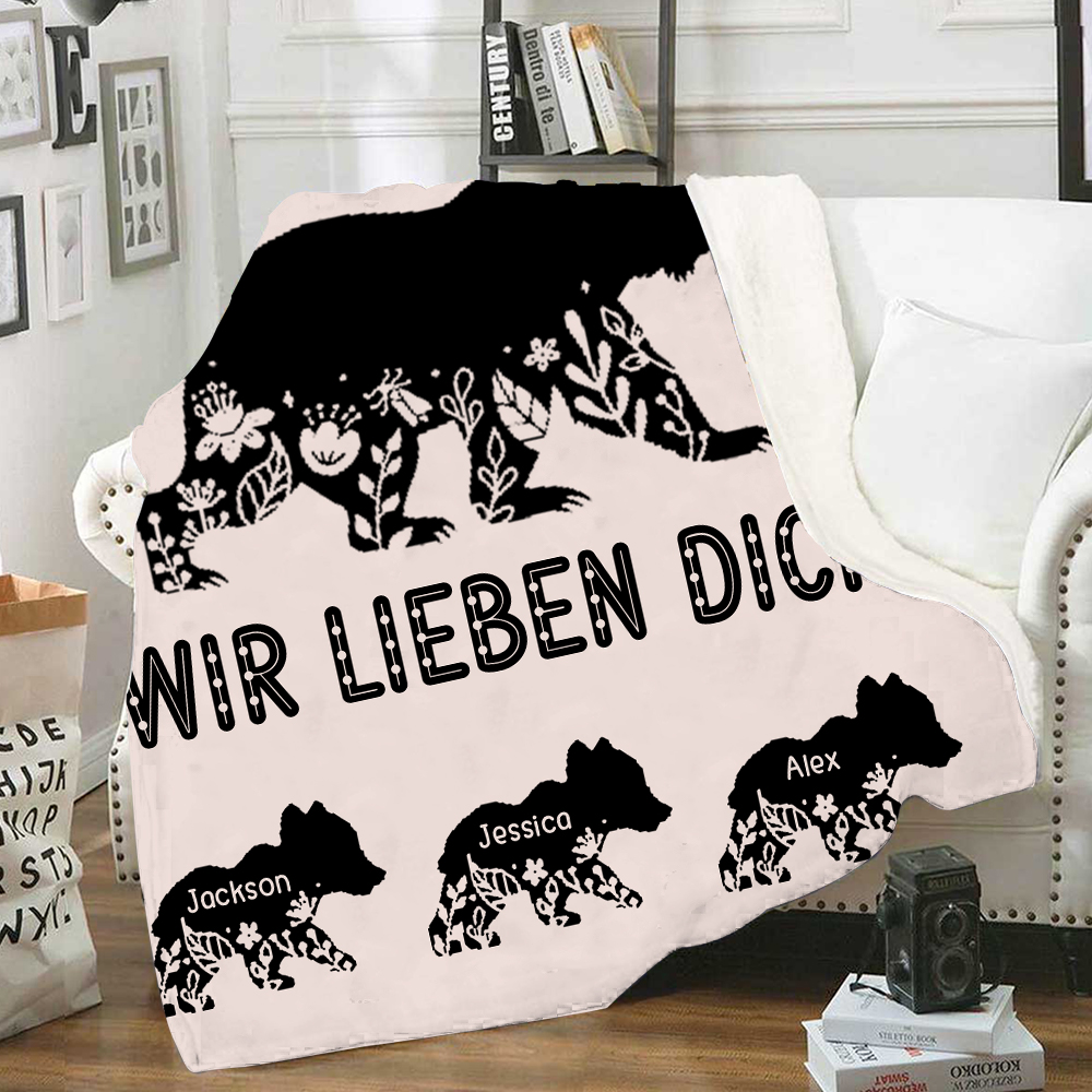 Personalisierbare 3 Namen Mama Bär Wir lieben dich Rosa Decke - Geschenk für Mutter