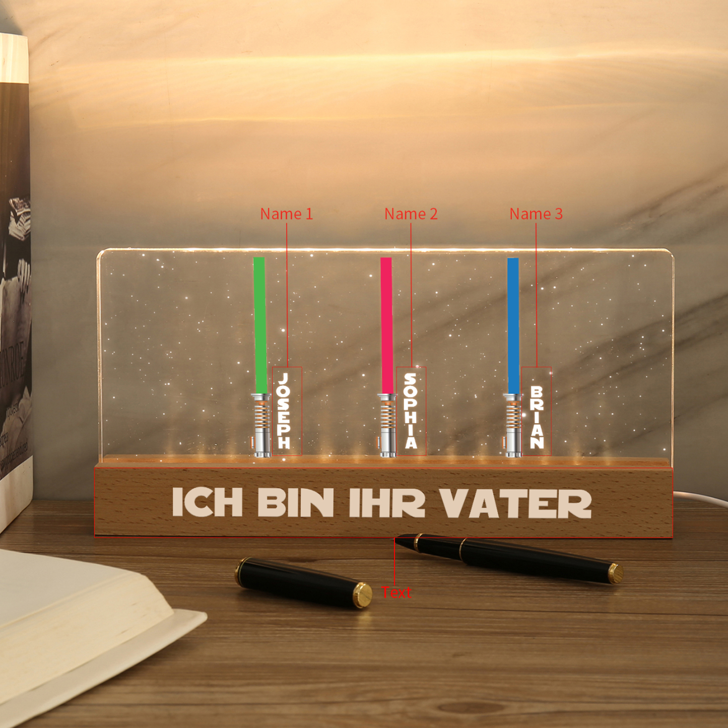 Personalisierbare 3 Namen & Text Krieg der Sterne Acryl Nachtlicht - für Familie
