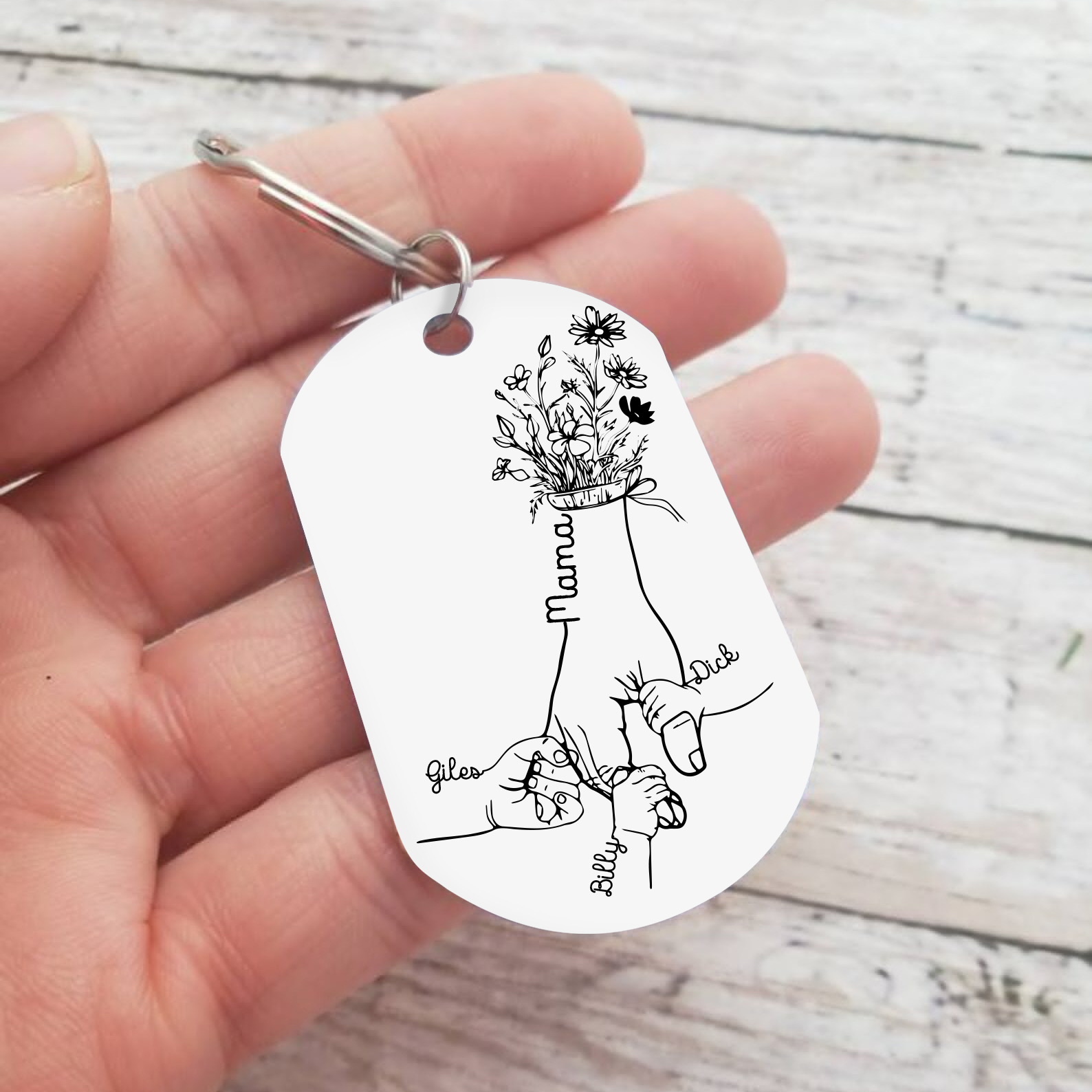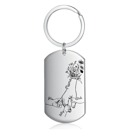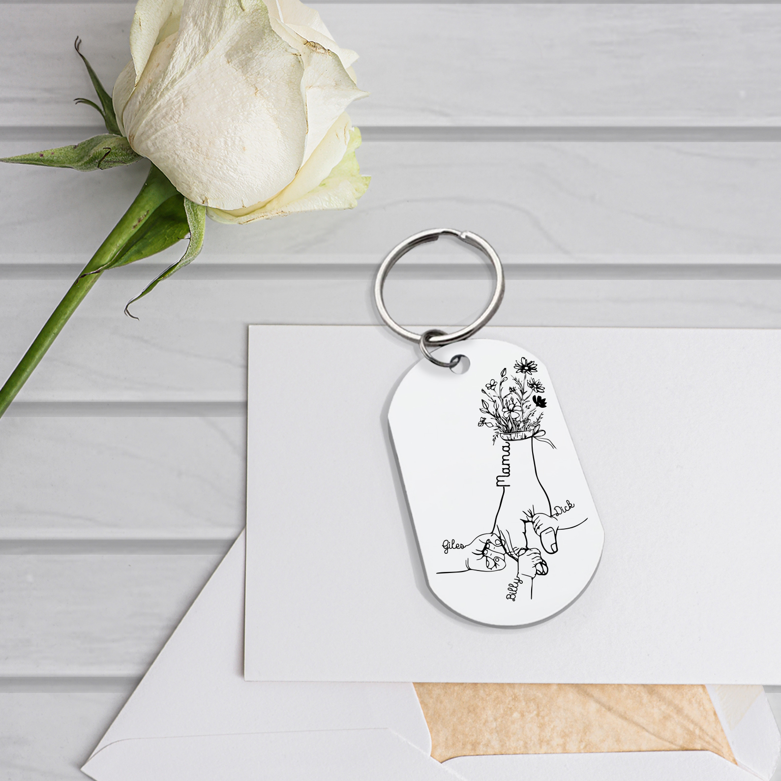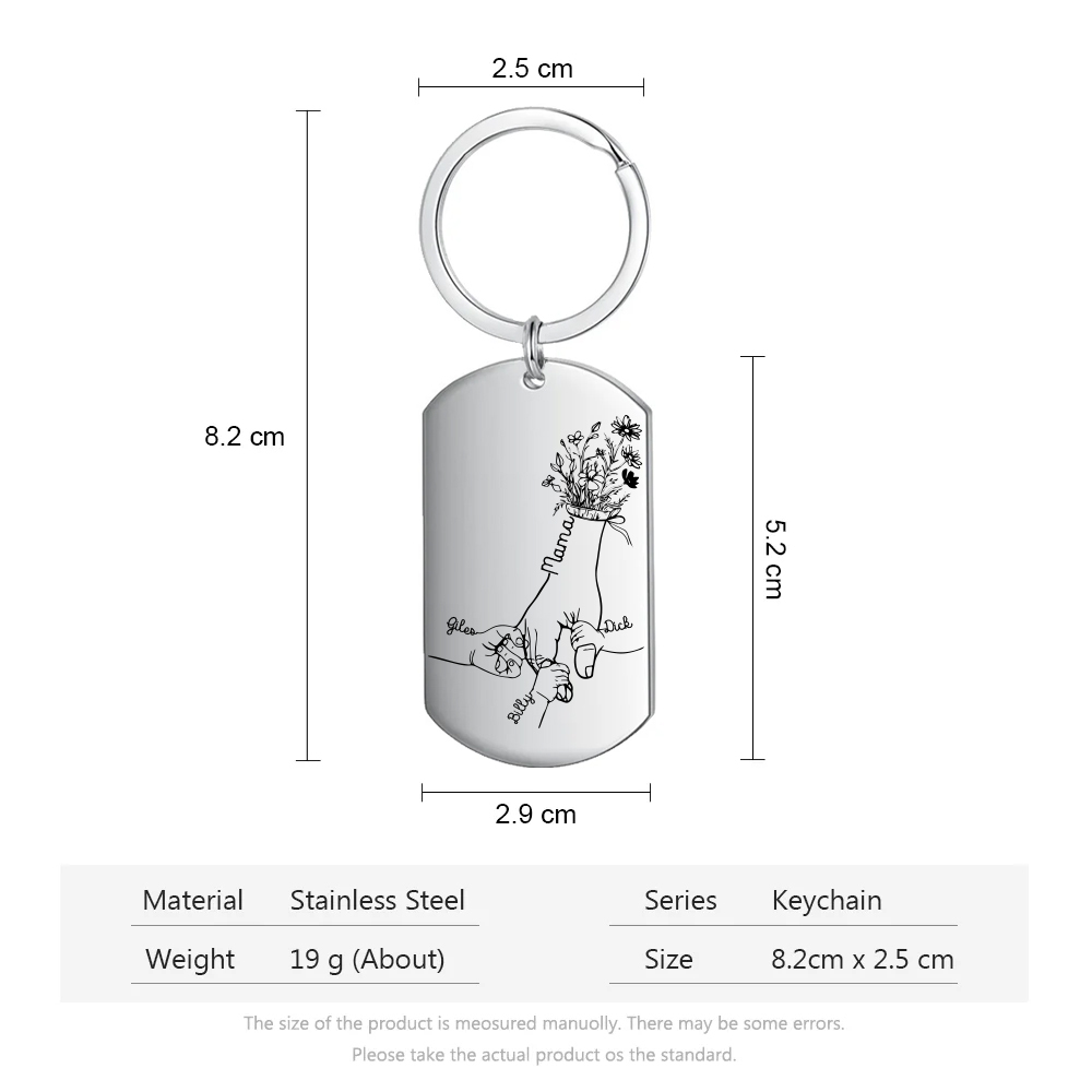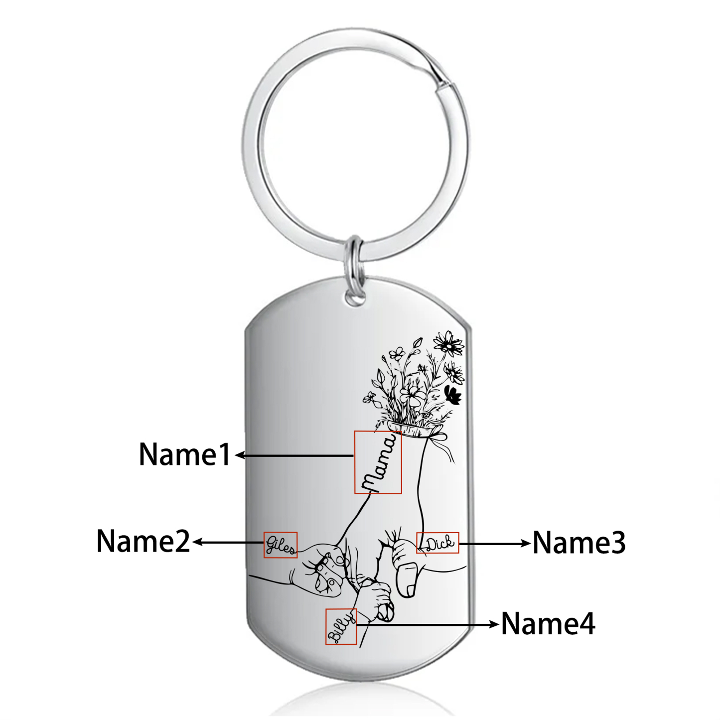 Personalisierbare 4 Namen Blume Hand Familie Schlüsselanhänger-Hinter jedem Glücklichen Kind steht eine Großartige Mutter-Geschenk mit Nachrichtenkarte