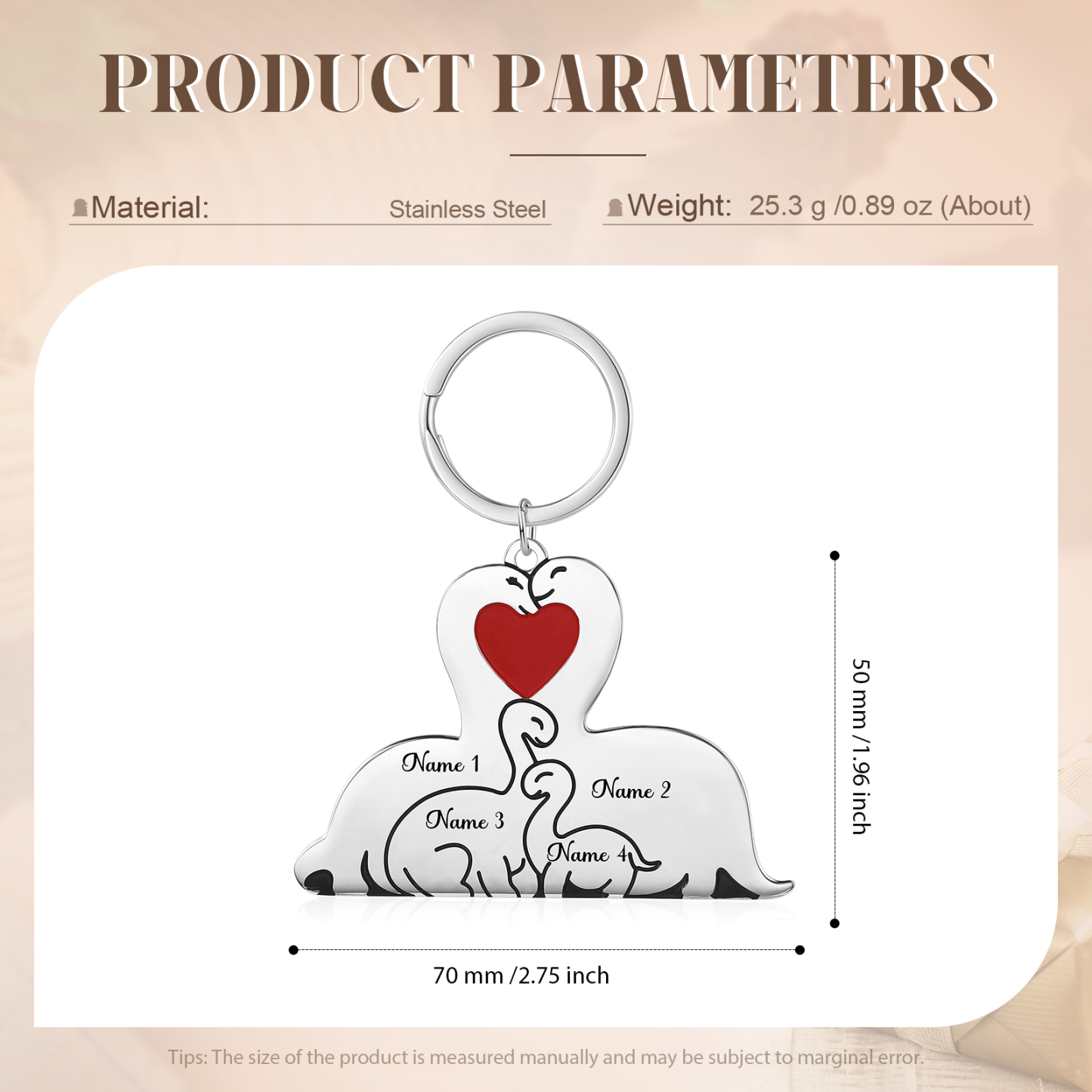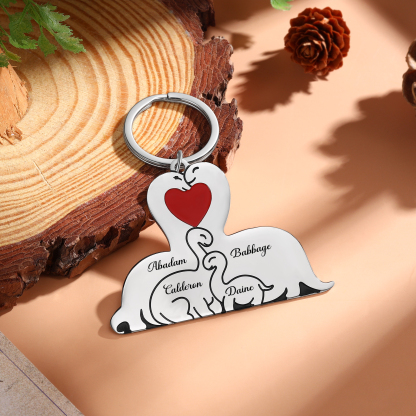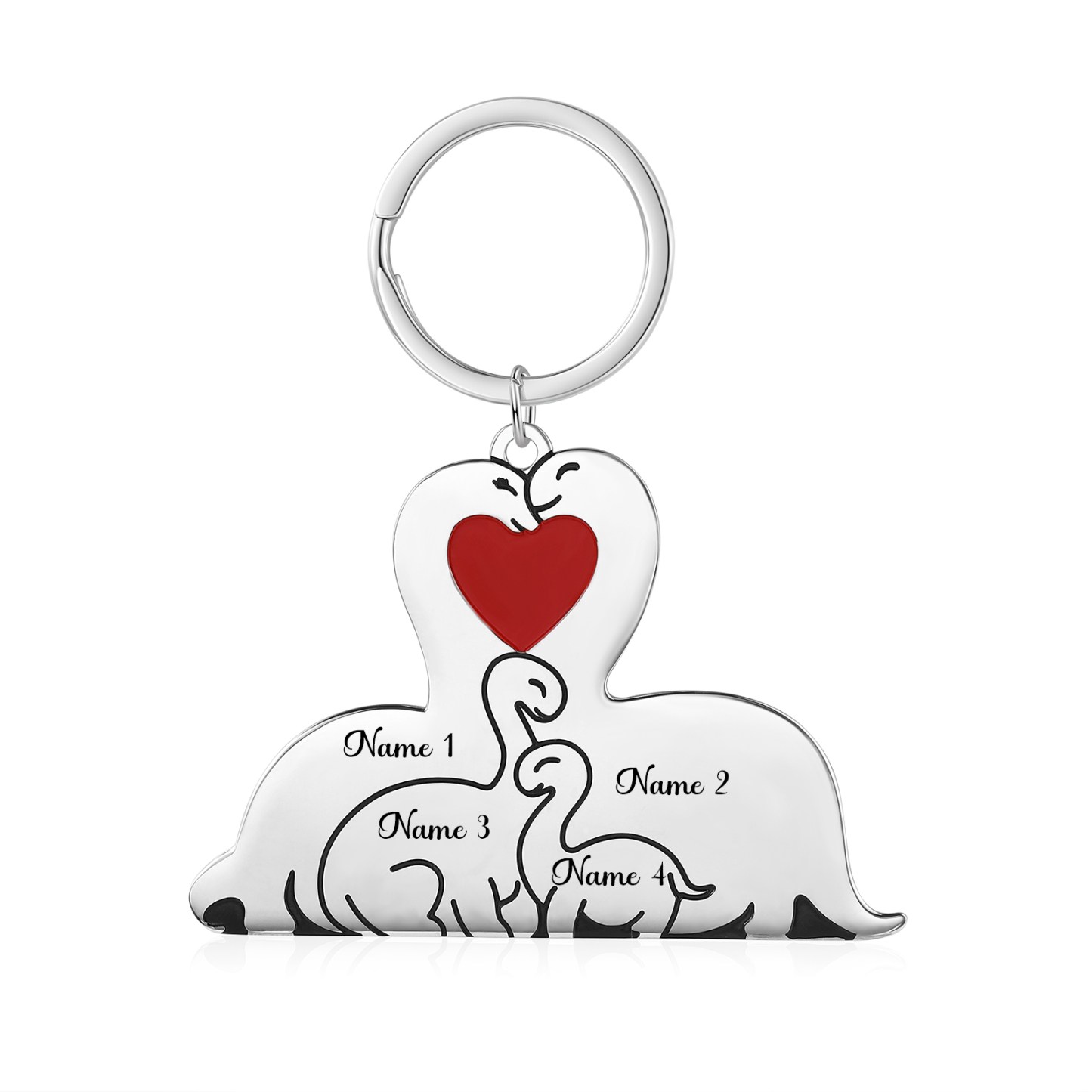 Personalisierbare 4 Namen Familie Dino Metall Schlüsselanhänger