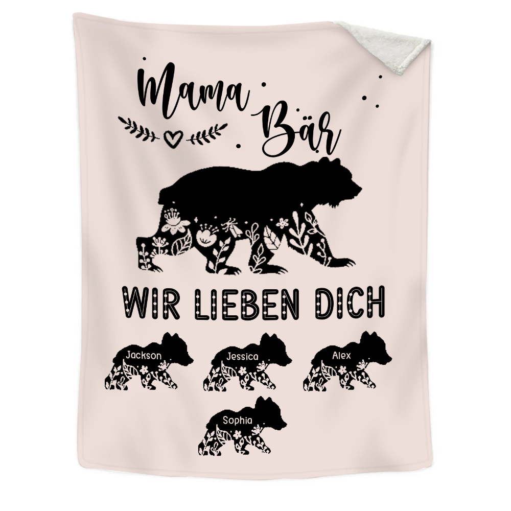 Personalisierbare 4 Namen Mama Bär Wir lieben dich Rosa Decke - Geschenk für Mutter