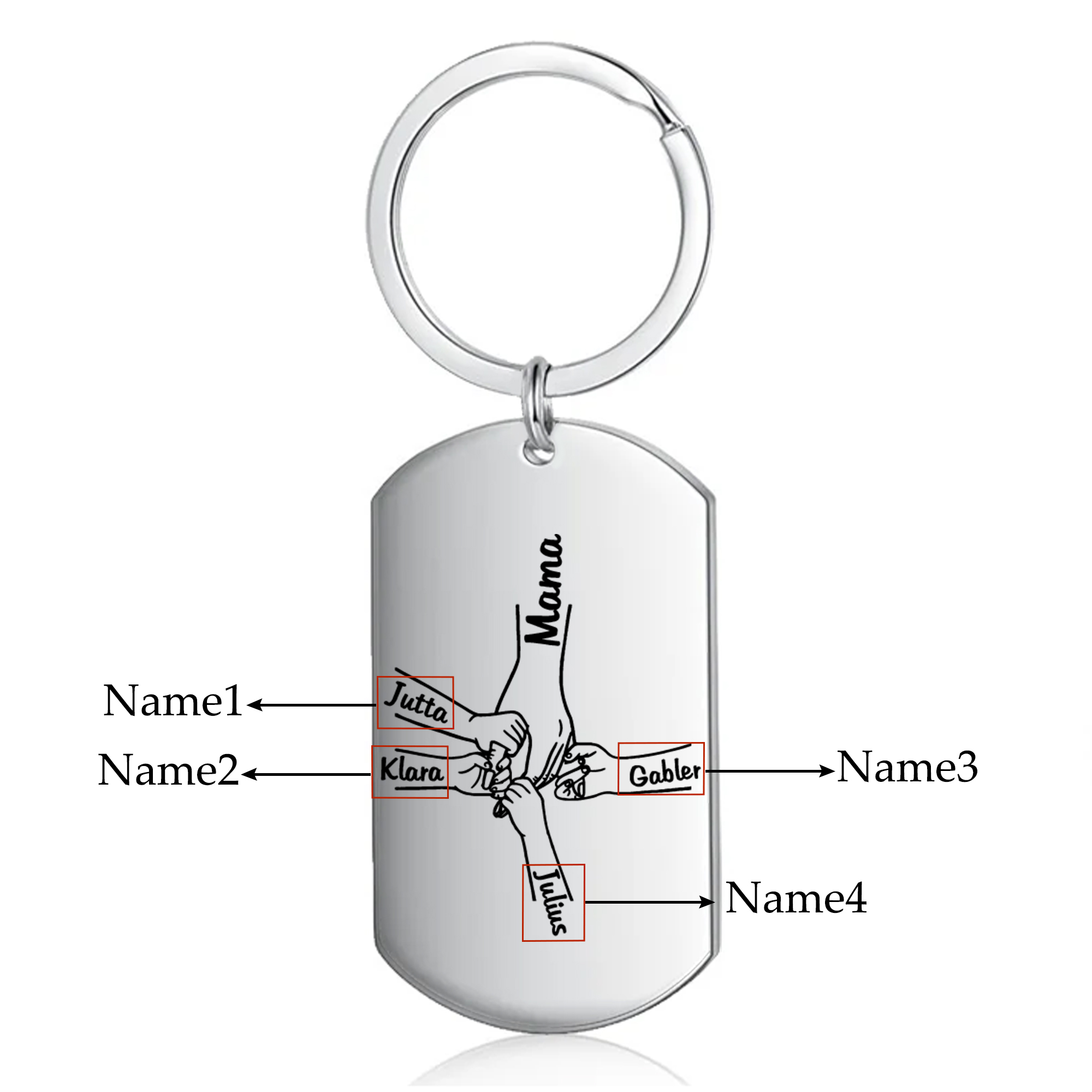 Personalisierbare 4 Namen Mama Hand Schlüsselanhänger-Liebe Mama du hast ja bereits uns