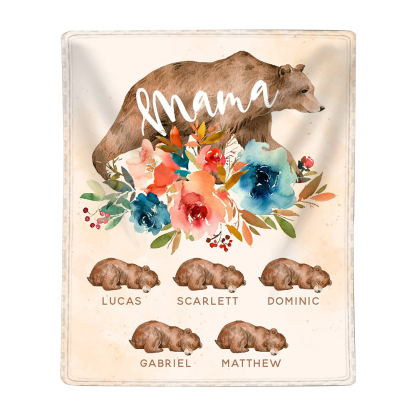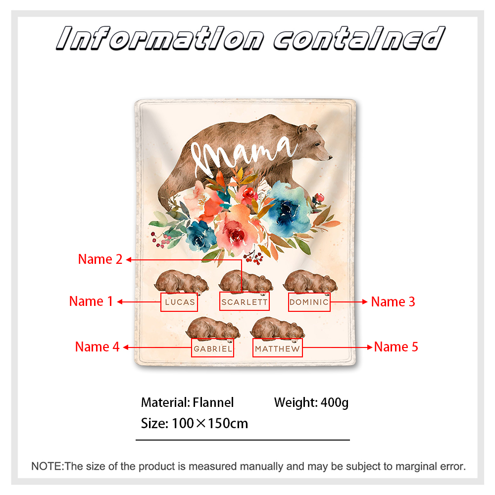 Personalisierbare 5 Namen Bunt Blume Mama Bär Decke - Geschenk für Mutter