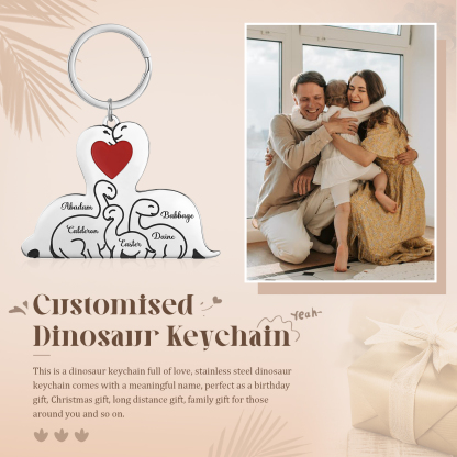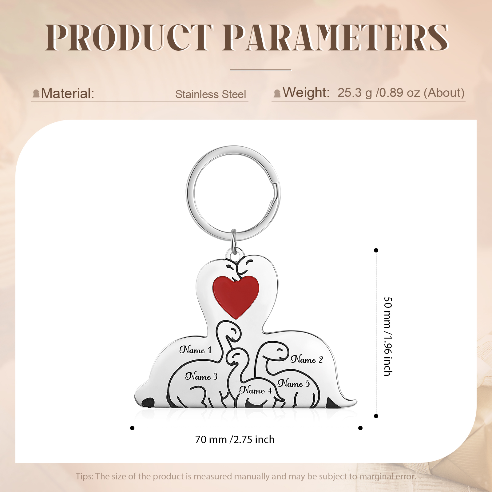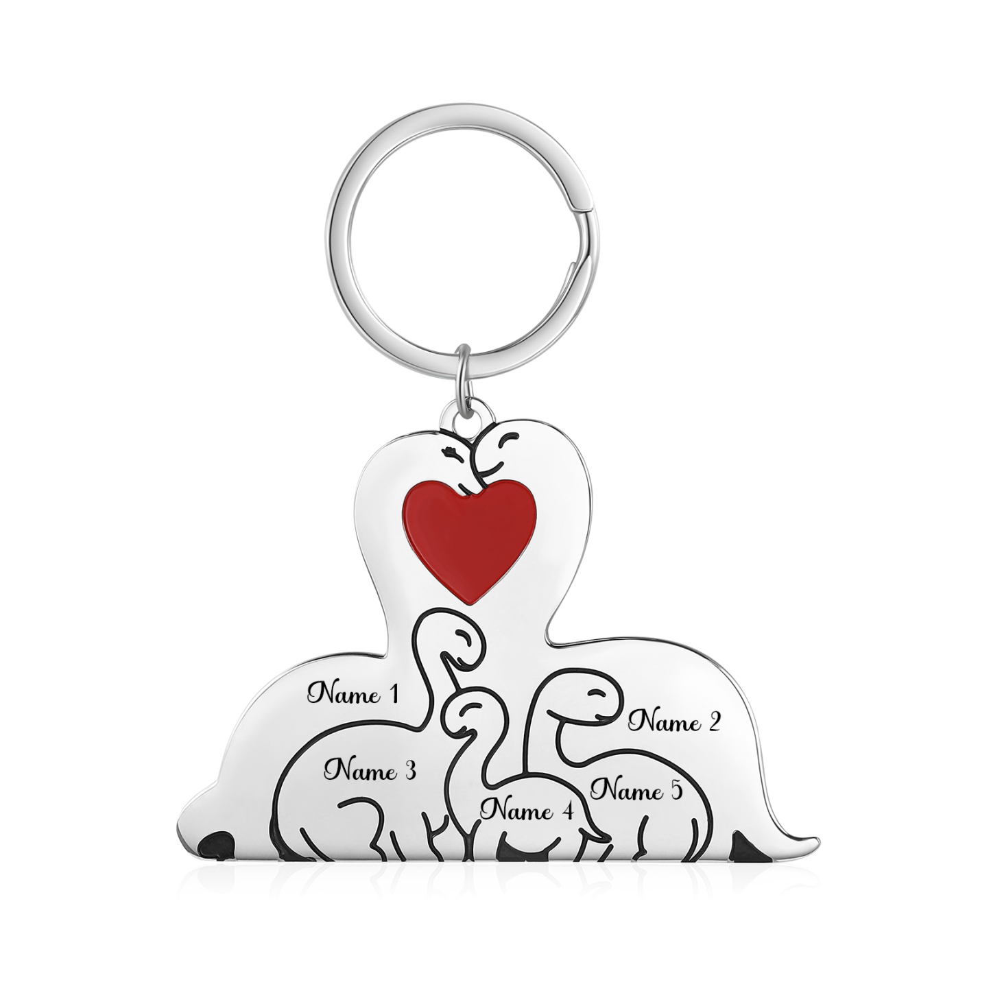 Personalisierbare 5 Namen Familie Dino Metall Schlüsselanhänger