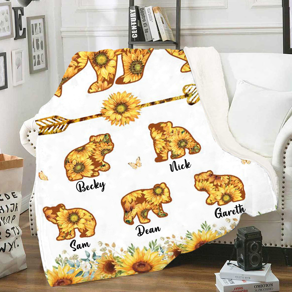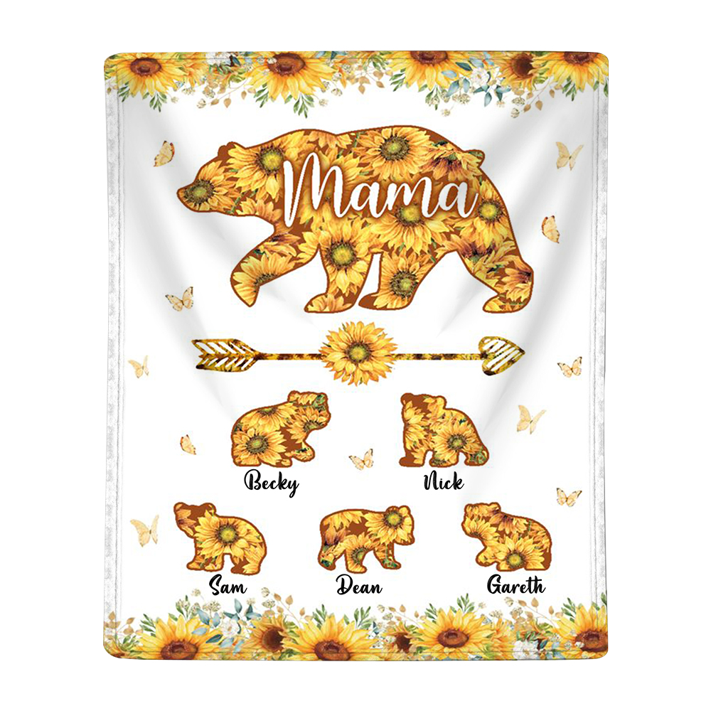 Personalisierbare 5 Namen Sonnenblume Mama Bär Decke - Geschenk für Mutter