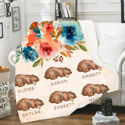 Personalisierbare 6 Namen Bunt Blume Mama Bär Decke - Geschenk für Mutter