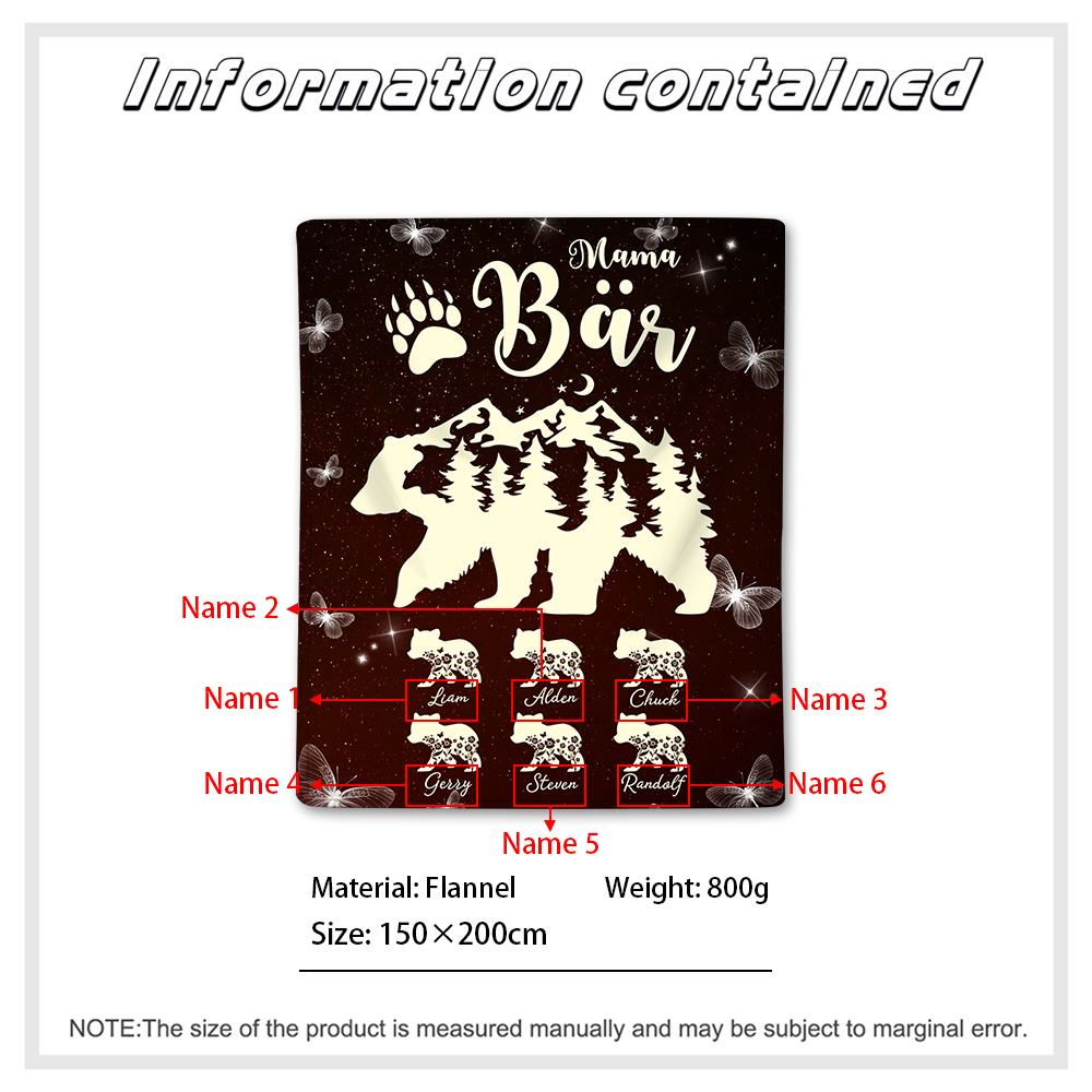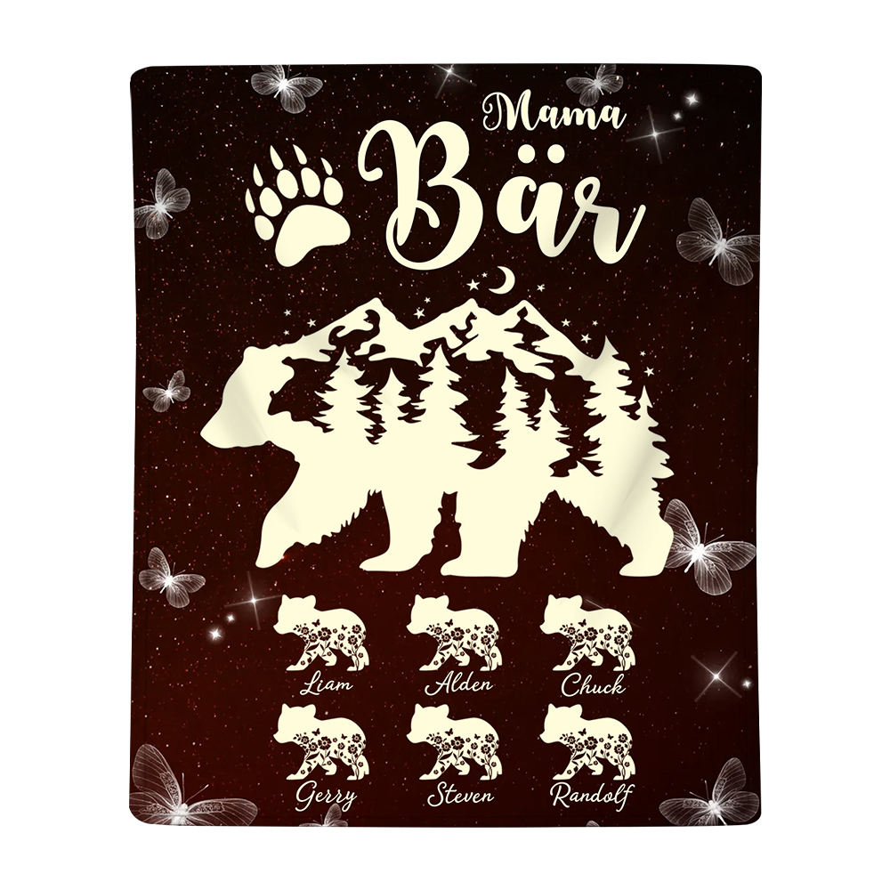 Personalisierbare 6 Namen Mama Bär Braun Decke - Geschenk für Mutter