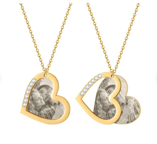 Personalisierbare Foto Doppelherz Halskette mit Zirkonia