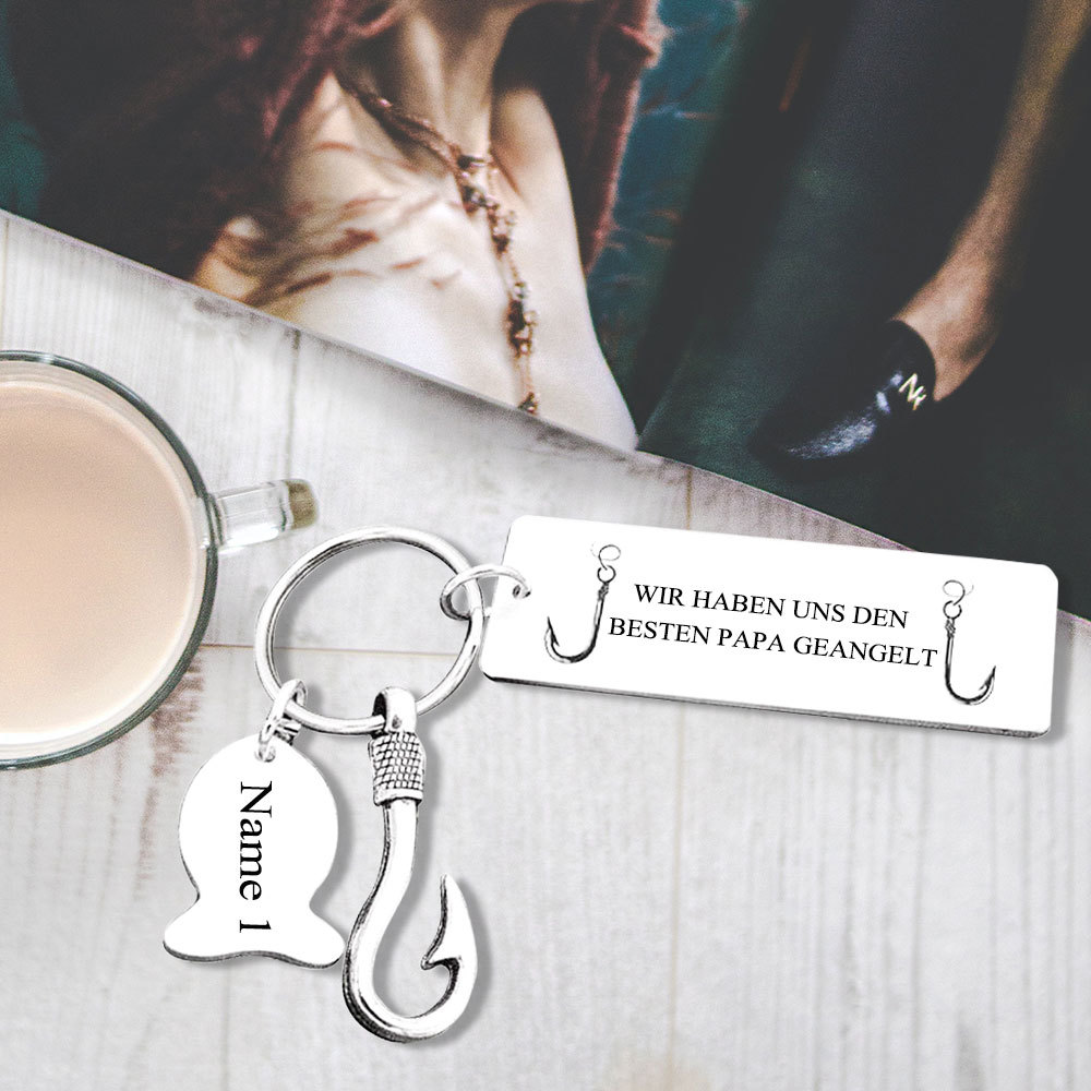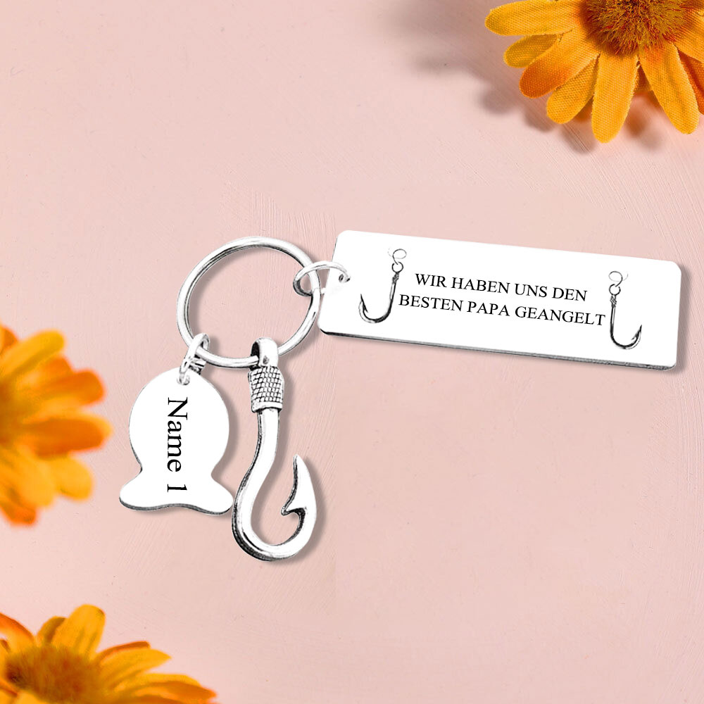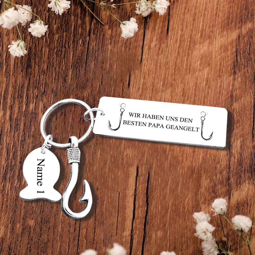 Personalisierbarer 1 Name Angelhaken Schlüsselanhänger-Wir haben uns den besten Papa geangelt-Geschenk für Vater