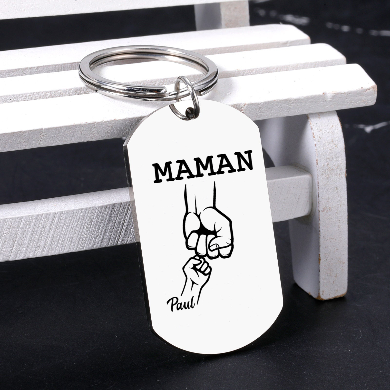 Personalisierbarer 1 Name & Text Faust Schlüsselanhänger