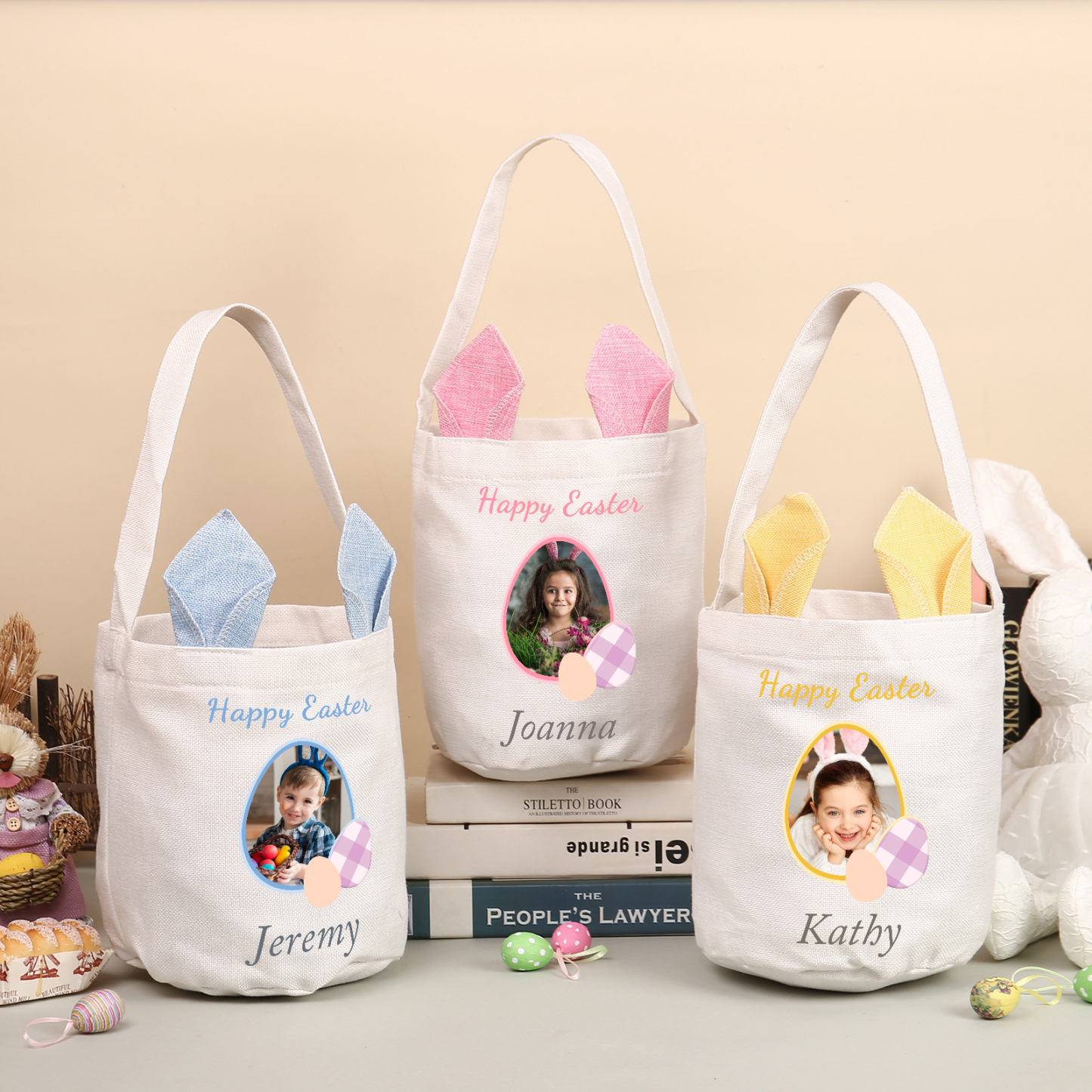 Personalisierbarer 1 Text & Name & Foto Ostern Baumwolle Hase Tasche