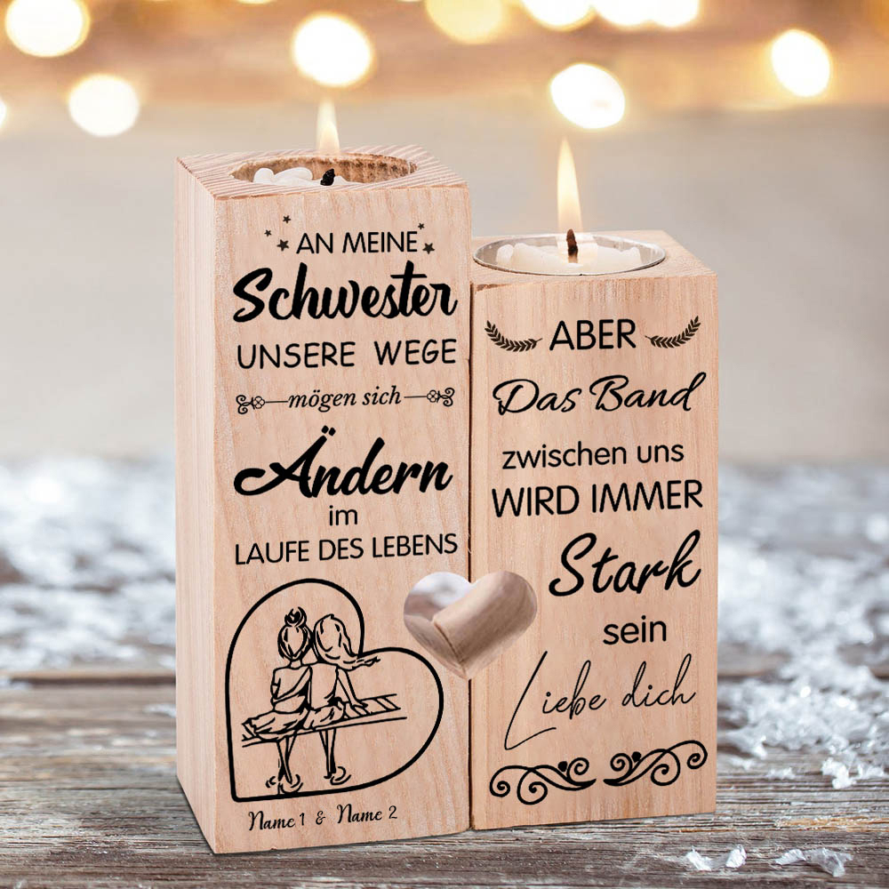 Personalisierbarer 2 Namen-Aber das Band zwischen uns wird immer stark sein-Kerzenhalter für Schwester